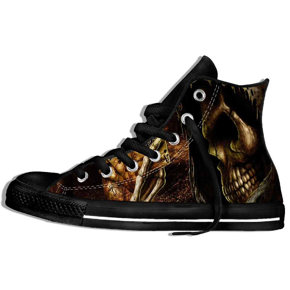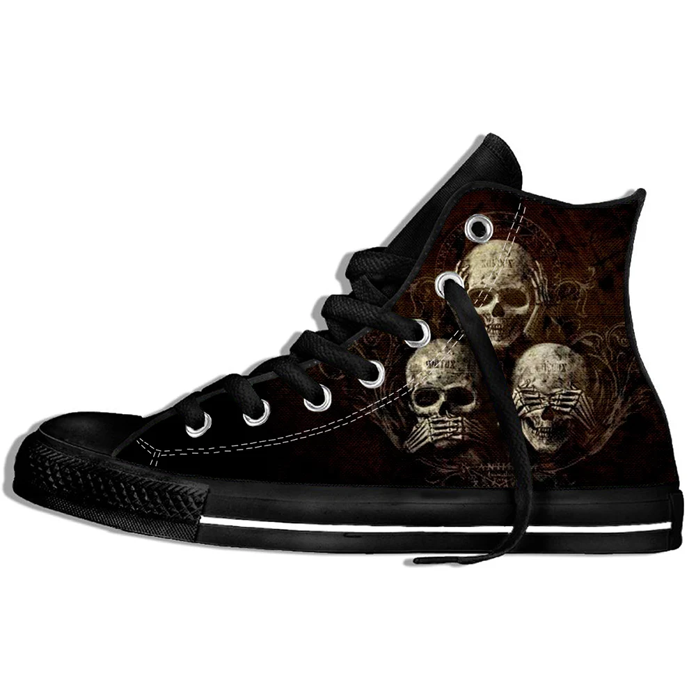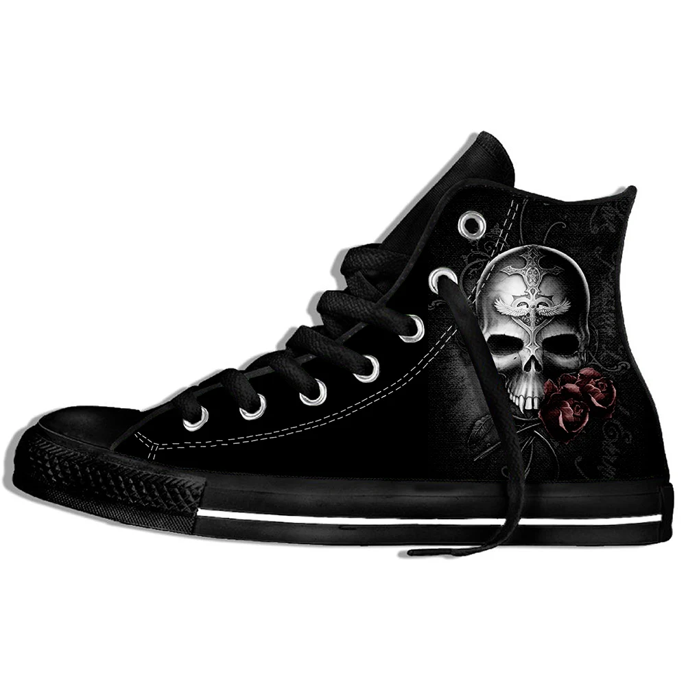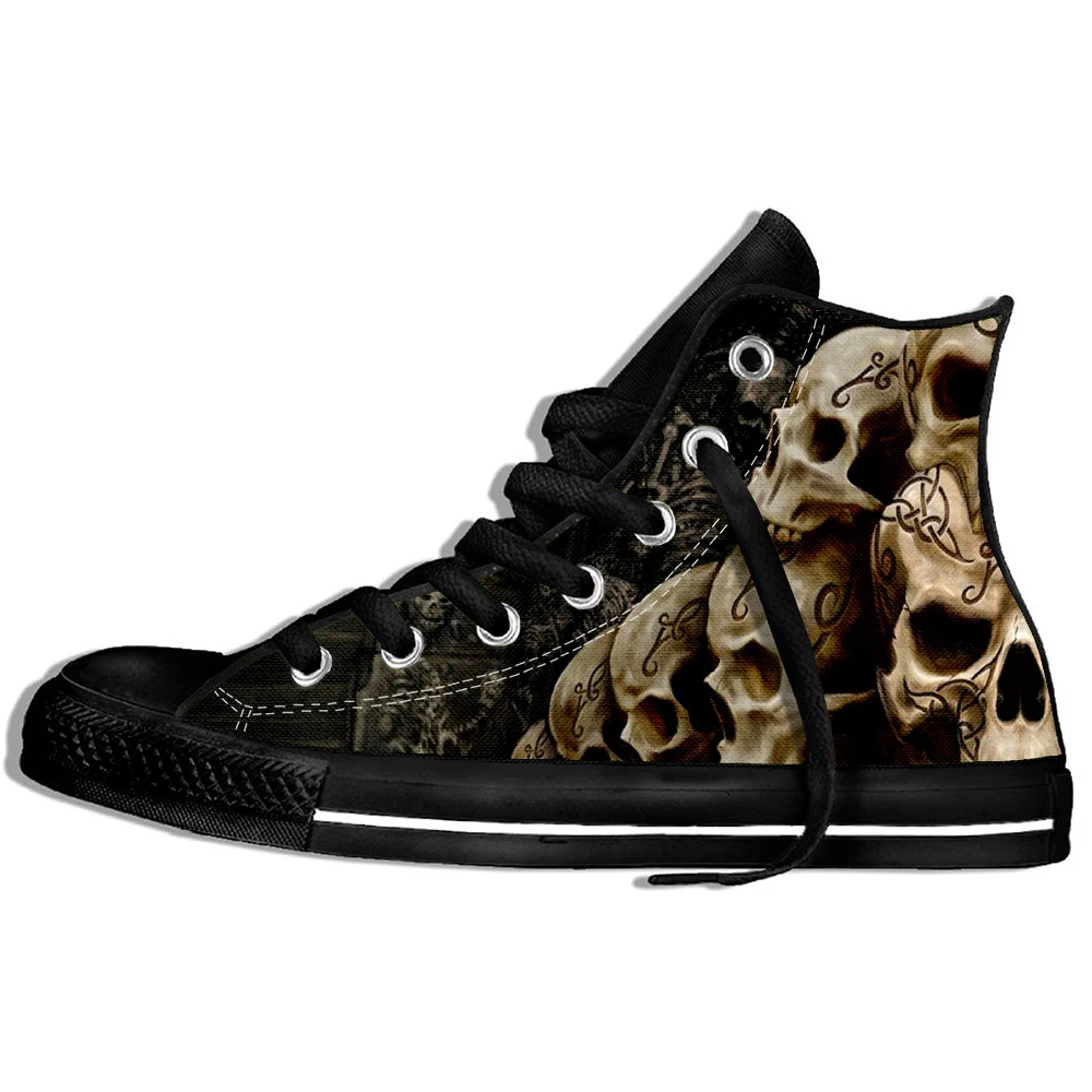 Туфли На Шнуровке Для мужчин и женщин, высокие, Вулканизированная подошва, классические, крутые, черные, панк, с черепом, плоская подошва