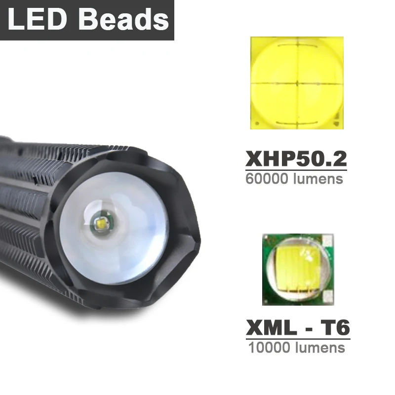 Сверхмощный тактический фонарик XHP50.2, светодиодный Телескопическ...