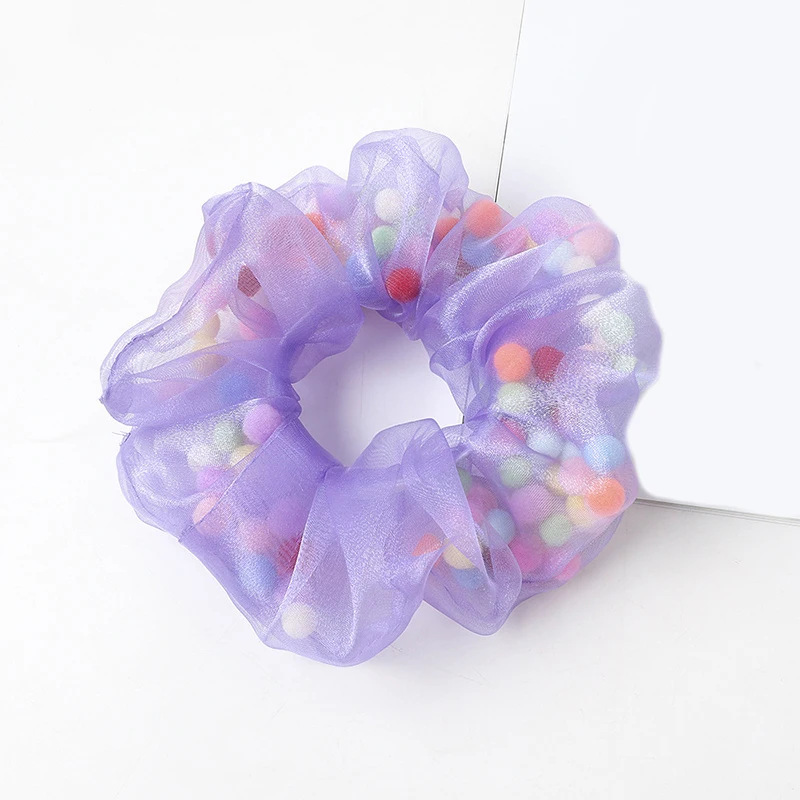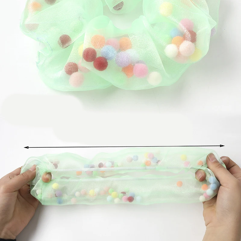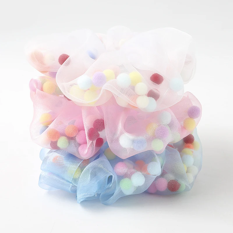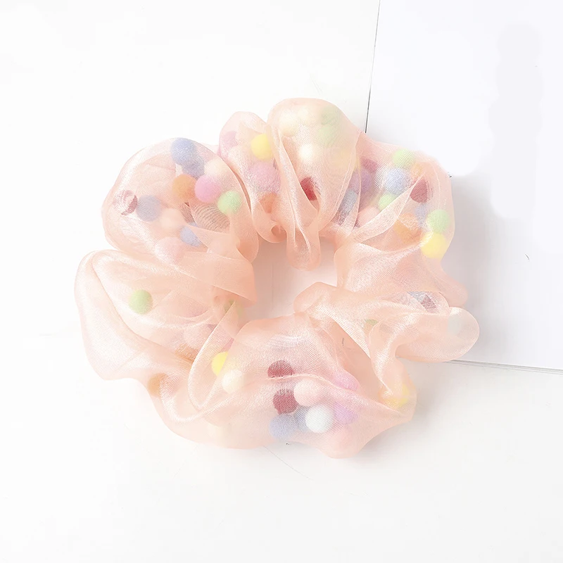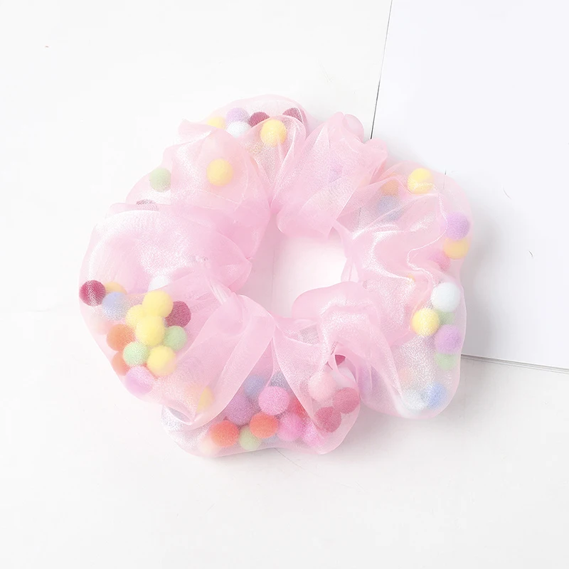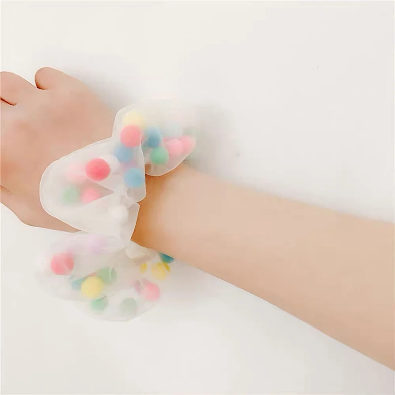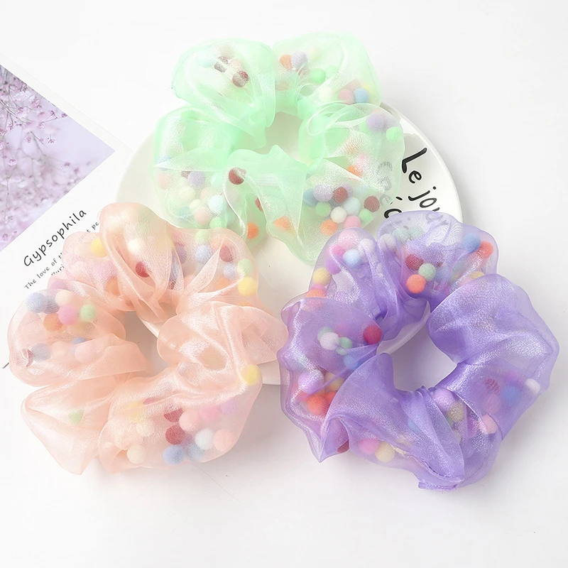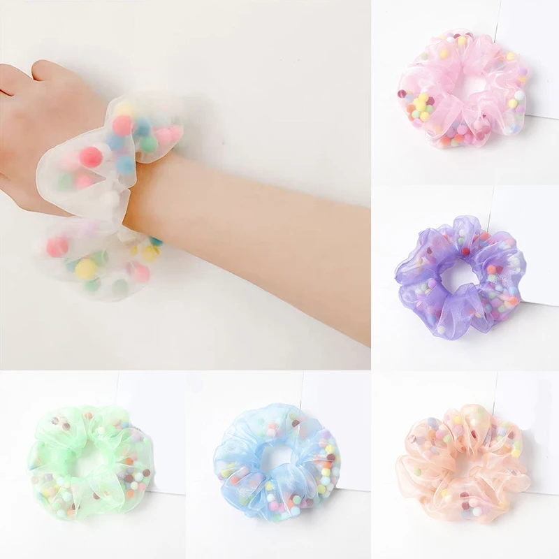 Прозрачная резинка из органзы с цветными сетчатыми шариками, кольцо для волос с конским хвостом, веревка для волос