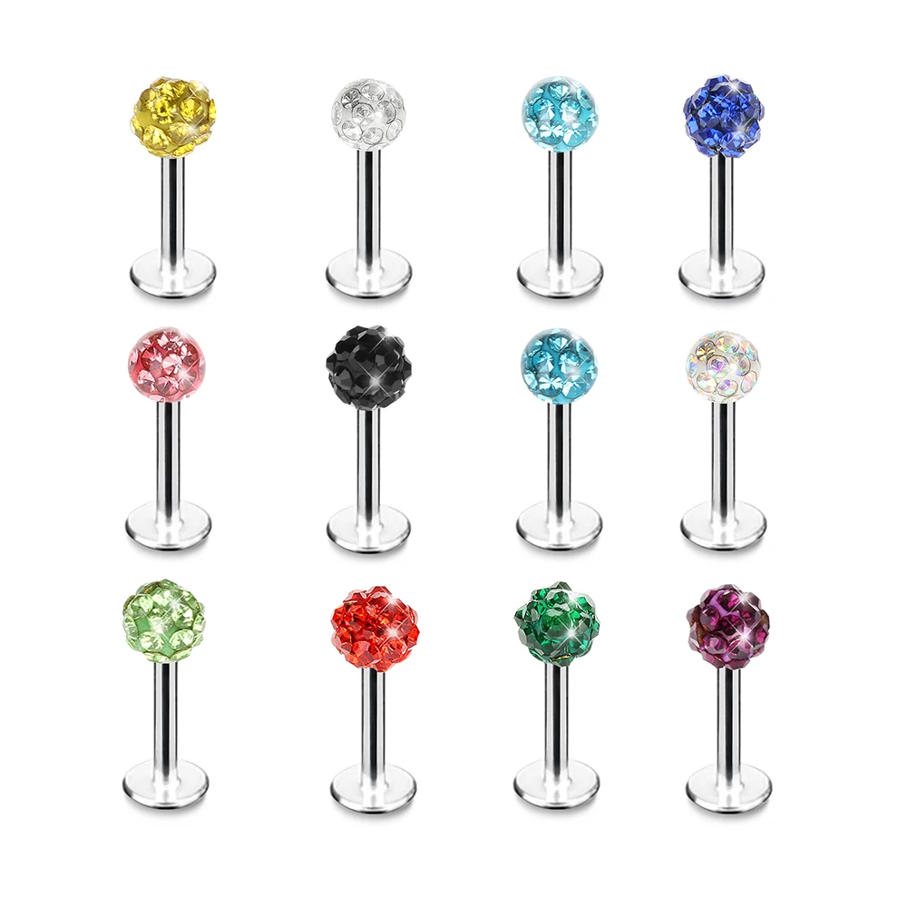 Кольцо-гвоздик с хрустальным шариком для пирсинга для мужчин и женщин, модное ювелирное изделие из хирургической стали, Лабрет Монро-Козелка, тела, губ, ушей, 4 мм
