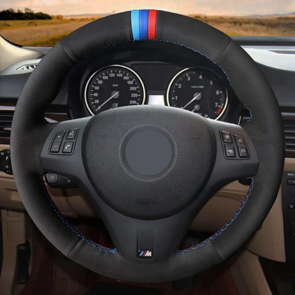 Чехол рулевого колеса автомобиля DIY мягкая черная замша для BMW (M...