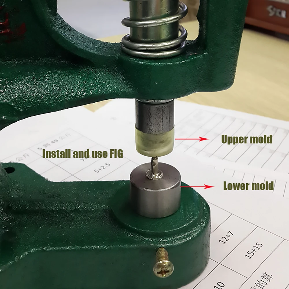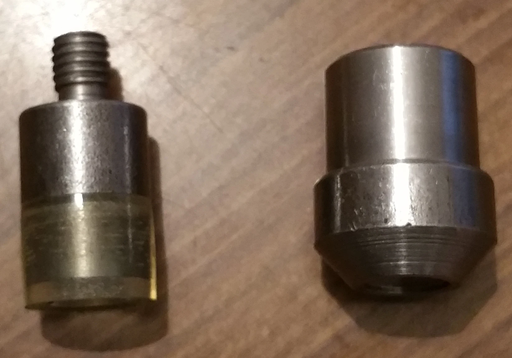 Пуансоны ручного пресса для установки хольнитенов (заклёпок) 9х9 мм выполнены грубовато, но свою задачу выполняют хорошо. Чистоту обработки металла можно было сделать и лучше, хотя за такую цену вряд ли можно было ожидать лучше. :-) В комплекте также были сами хольнитены - стиль "старая бронза" - качество приемлемое, 100 комплектов из двух частей. Устанавливаются нормально, без перекосов. Доставили в Москву за 10 дней, трек отслеживался. Покупкой доволен. Рекомендую товар и поставщика. ЗЫ: При заказе помните, что верхние пуансоны подходят только к китайским прессам - хвостовик с резьбой М8 (у турецких - дюймовая резьба 1/4", около 6 мм).