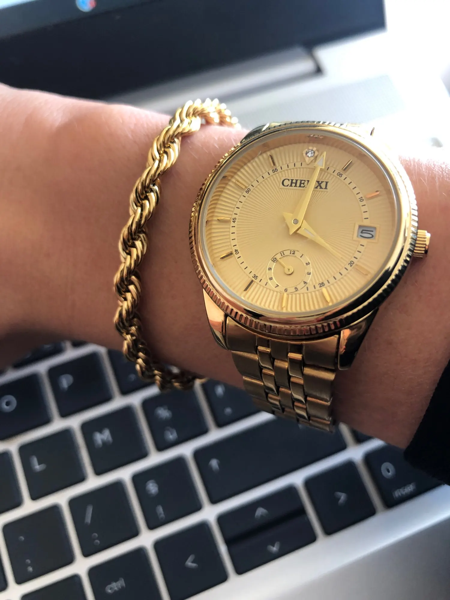 Милый изящный и точный продукт. Подходит для небольших запястья. Нержавеющая сталь, которая говорит так надеюсь, что она длится долгое время. Время обработки занимает некоторое время.