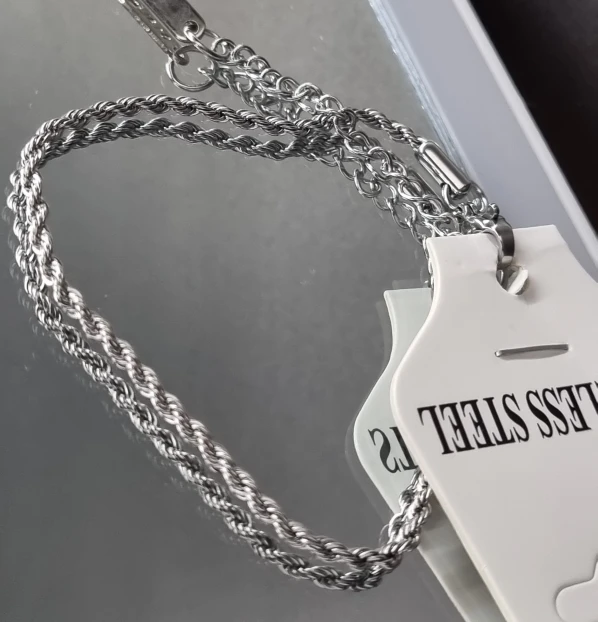 Размерам соответствует. Выглядят как сталь. Из опыта не первого года покупок в этом магазине цепочек, колец и серёжек ещё ни одна вещь не облезла, хотя ношу я не снимая что-то довольно долго, пока не надоест. Спасибо. Я довольна.