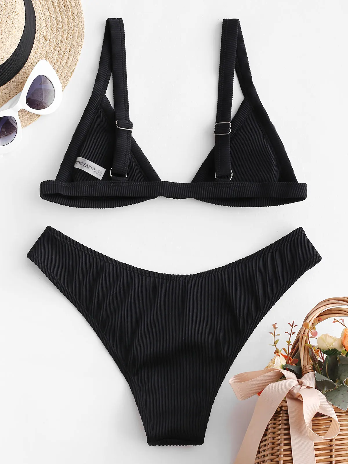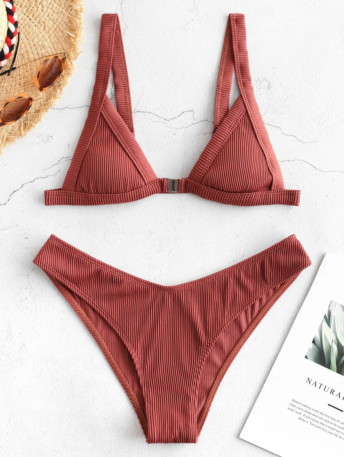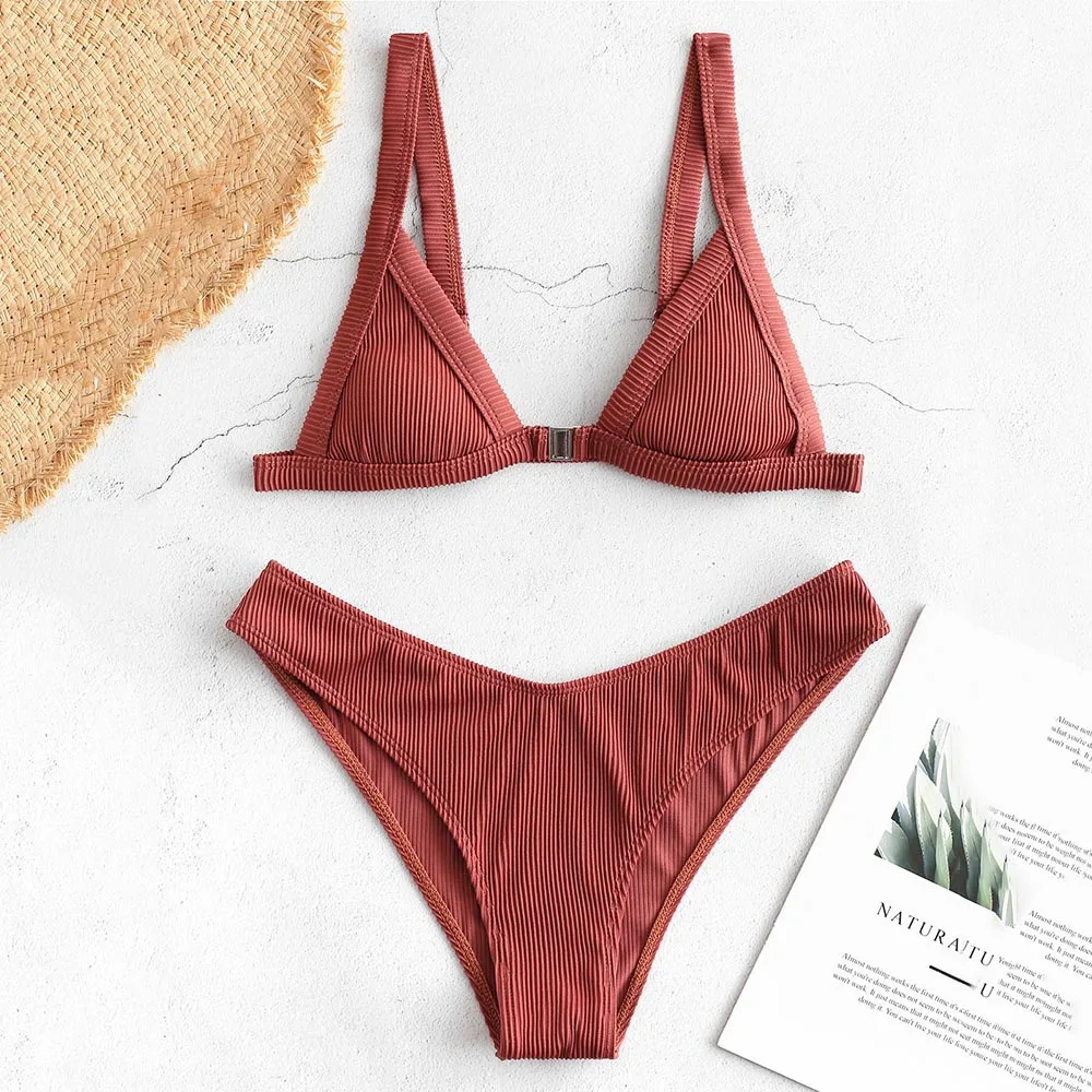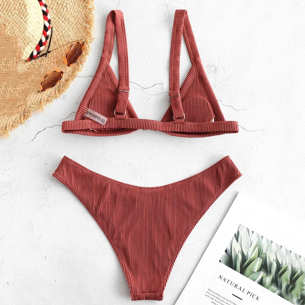 Женский купальный костюм с чашками пуш-ап и ремешками спереди