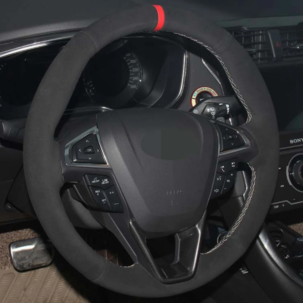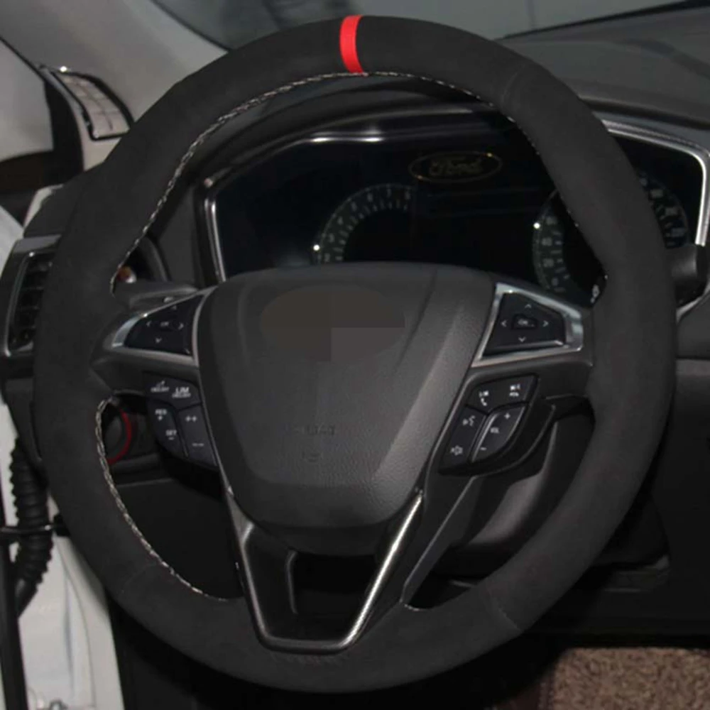 Чехол рулевого колеса автомобиля черная сшитая вручную натуральная кожа замша для Ford Mondeo Fusion 2013-2019 EDGE 2015-2019