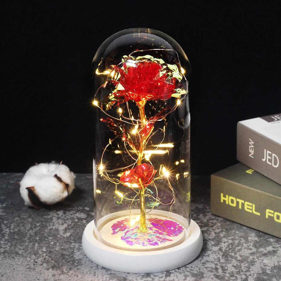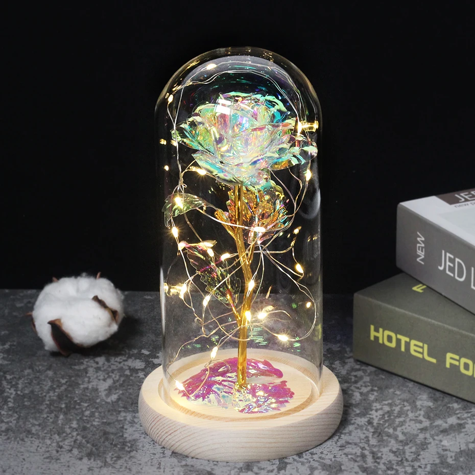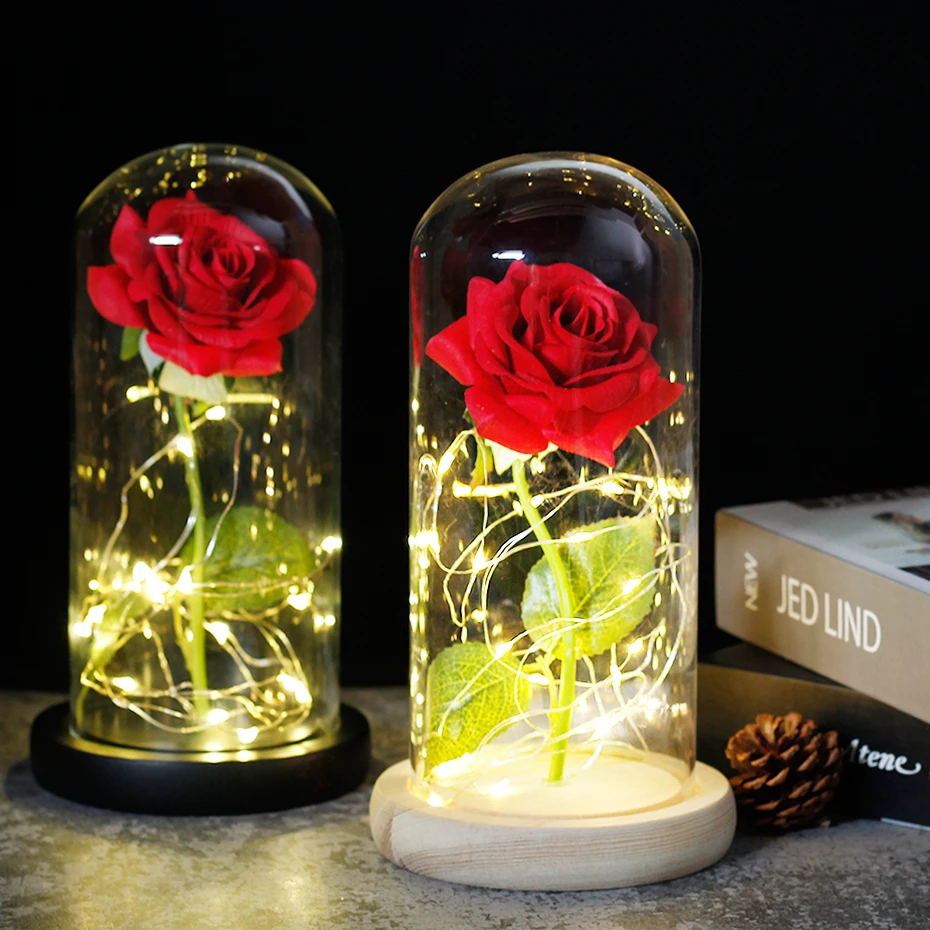 Искусственная вечная роза Красавица и чудовище, светодиодный купол светильник украшения интерьера, юбилей, свадьбы, Дня матери