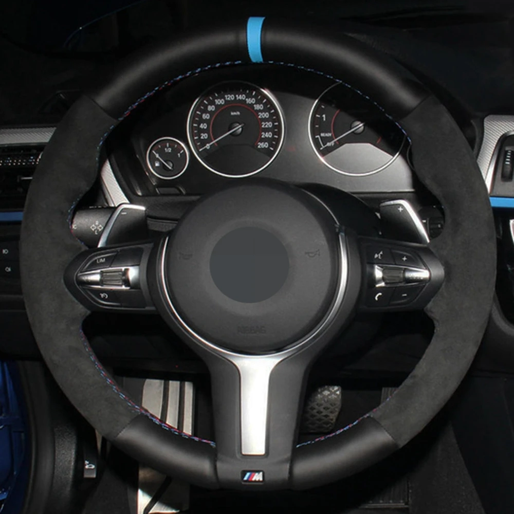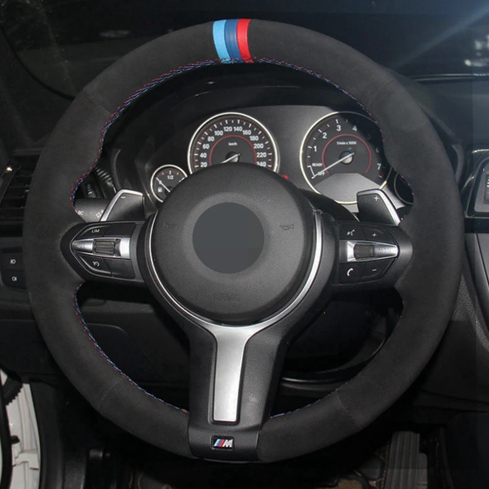 Чехол рулевого колеса автомобиля черная натуральная кожа замша для BMW M Sport F30 F31 F34 F10 F11 F07 X1 X2 X3 F25 F32 F33 F36 F48 F39