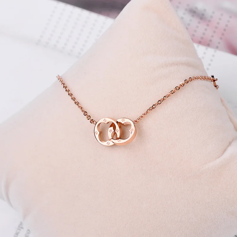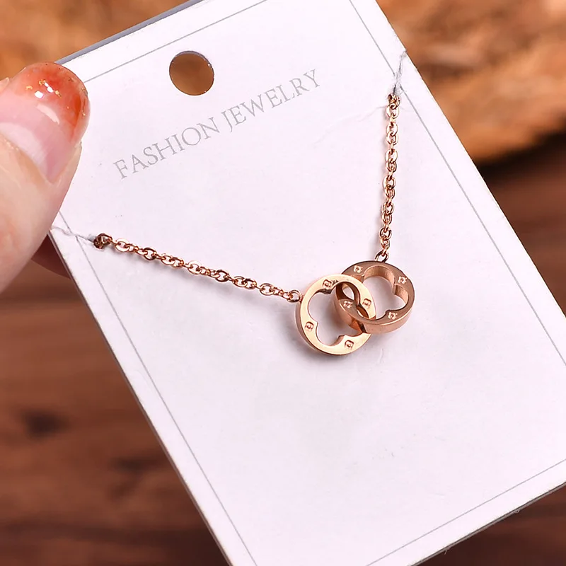Ожерелье из титановой стали цвета розового золота, противоаллергенное и не обесцвечивающее, ожерелье с четырьмя листьями клевера,