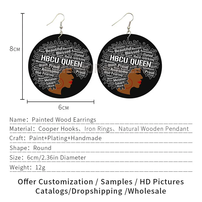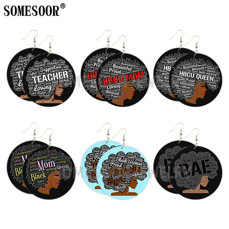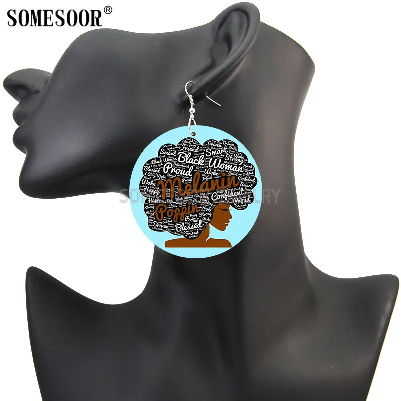 Деревянные серьги-подвески SOMESOOR, с изображением меланина, женск...