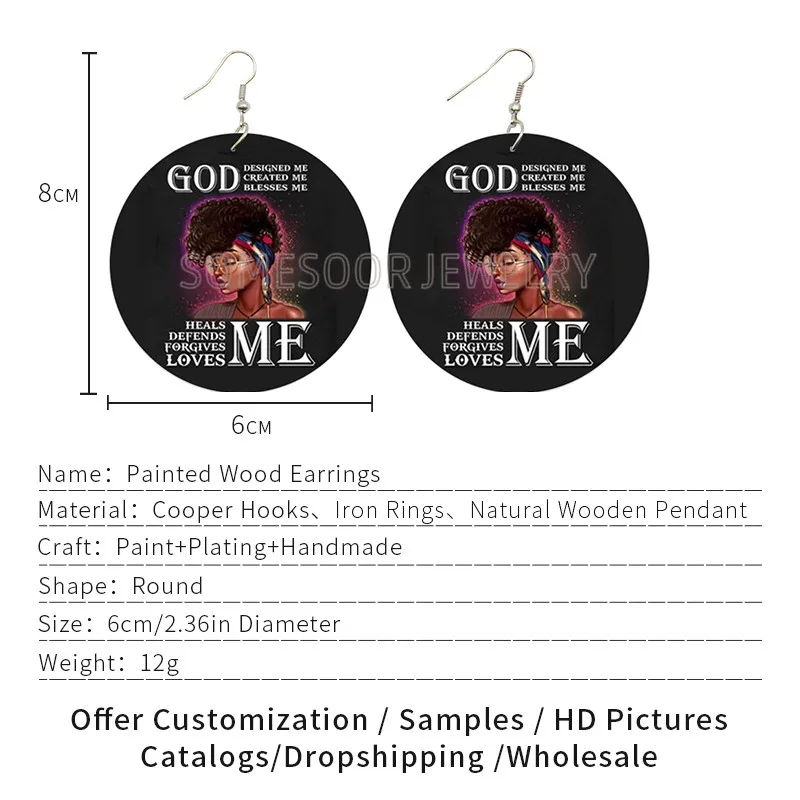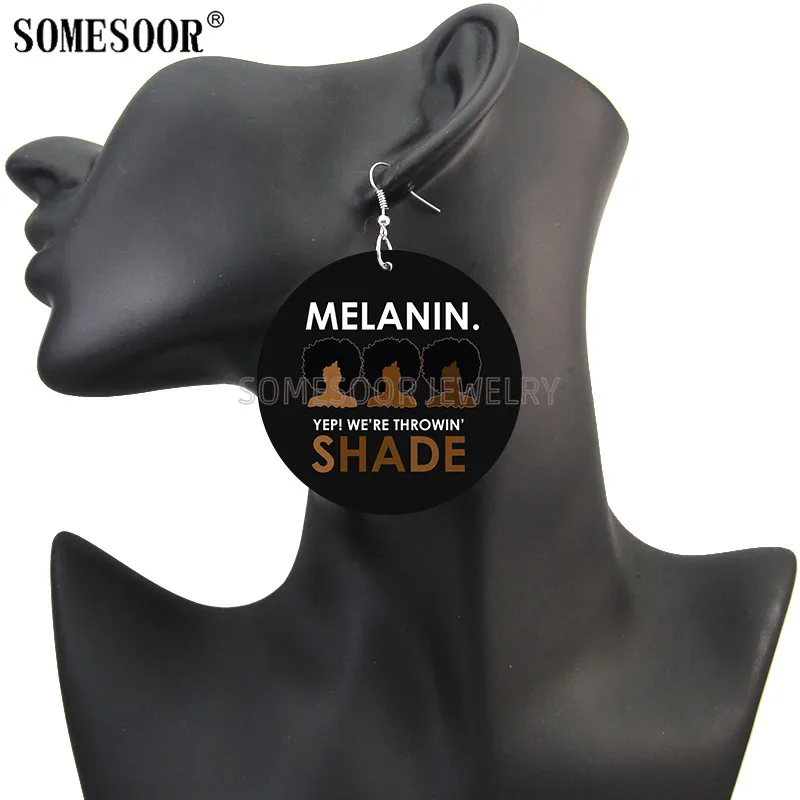 Деревянные серьги-подвески SOMESOOR, с изображением меланина, женск...