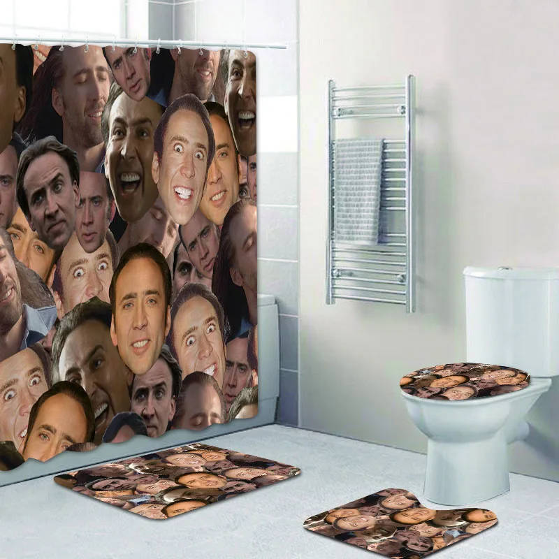Забавные занавески для душа Николя Кейдж с коллажем лица, 4 шт., водонепроницаемые занавески для ванной, коврики для ванной, ковер, декор для ванны