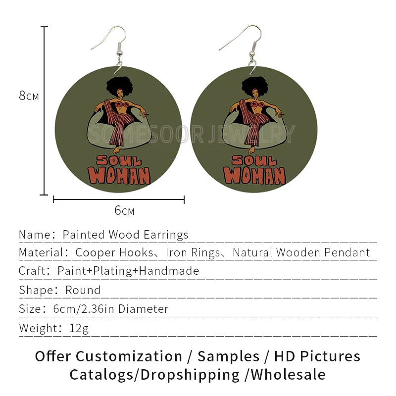 Деревянные серьги-подвески SOMESOOR, с изображением меланина, женск...