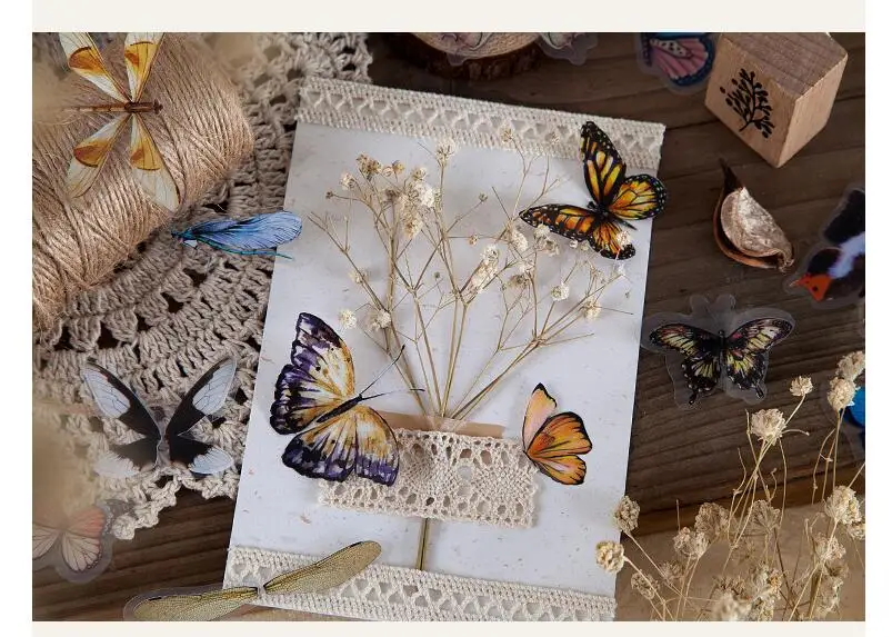 Теплые 40 шт.сумка, винтажные декоративные наклейки в виде бабочек,...