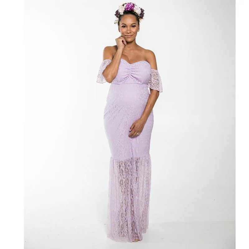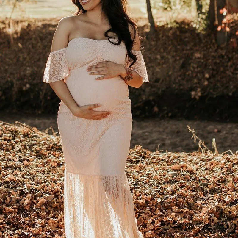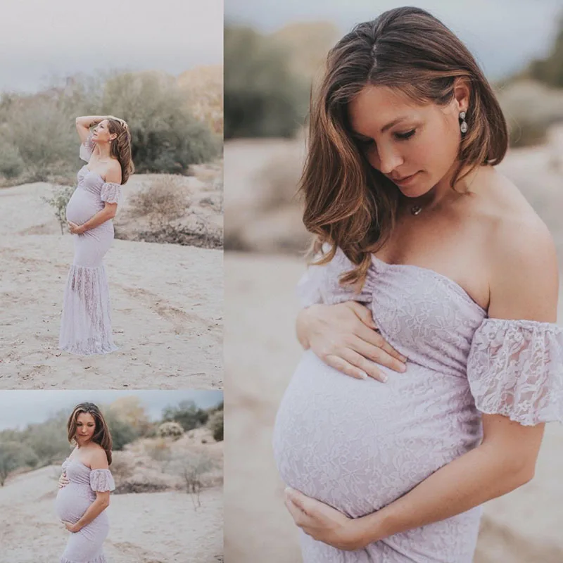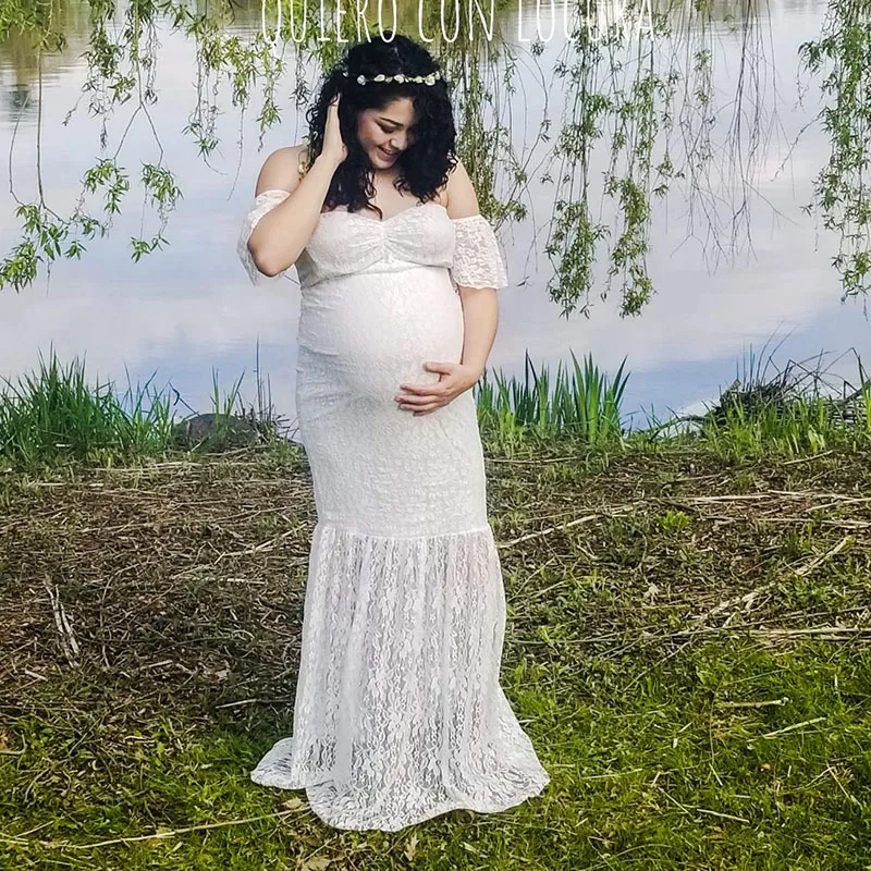 Элегантное кружевное платье-Русалка с открытыми плечами для беременных и малышей платье для фотосъемки платье для беременных Макси-платья для фотосъемки