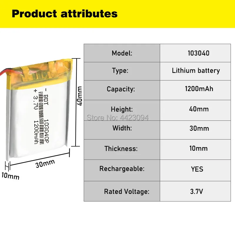Литий-полимерная аккумуляторная батарея 3,7 в 1200 мАч 103040 для M...