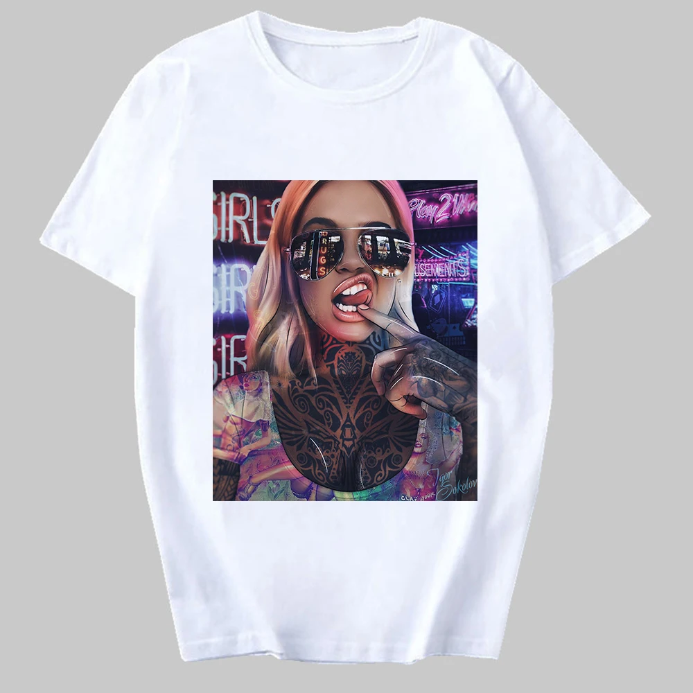 Футболка женская меланиновая с принтом девушек, крутая тенниска в стиле Харадзюку, модный топ в стиле хип-хоп, черная рубашка в стиле панк, на лето