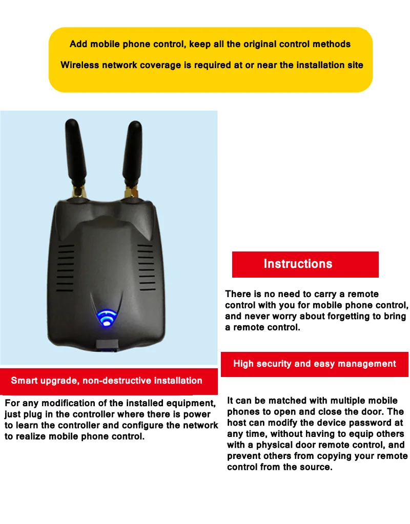 Мобильный телефон приложение пульт дистанционного управления Управление; Интеллигентая (ый) копия ролетные ворота двери гаража электрической двери дистанционного Управление WI-FI LKZQ002