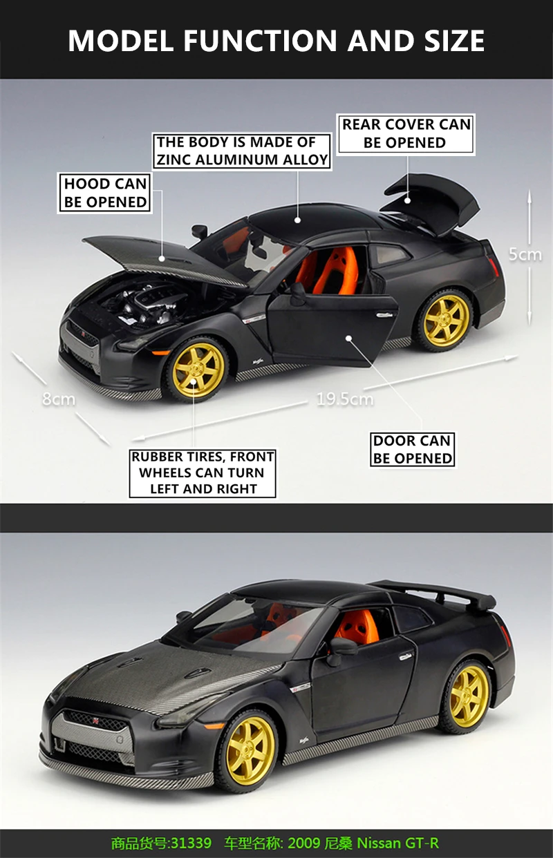 Модифицированная модель автомобиля Maisto 1:24 Nissan GTR Roadster из сплава Коллекционная Подарочная игрушка