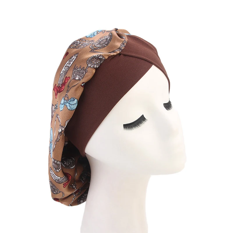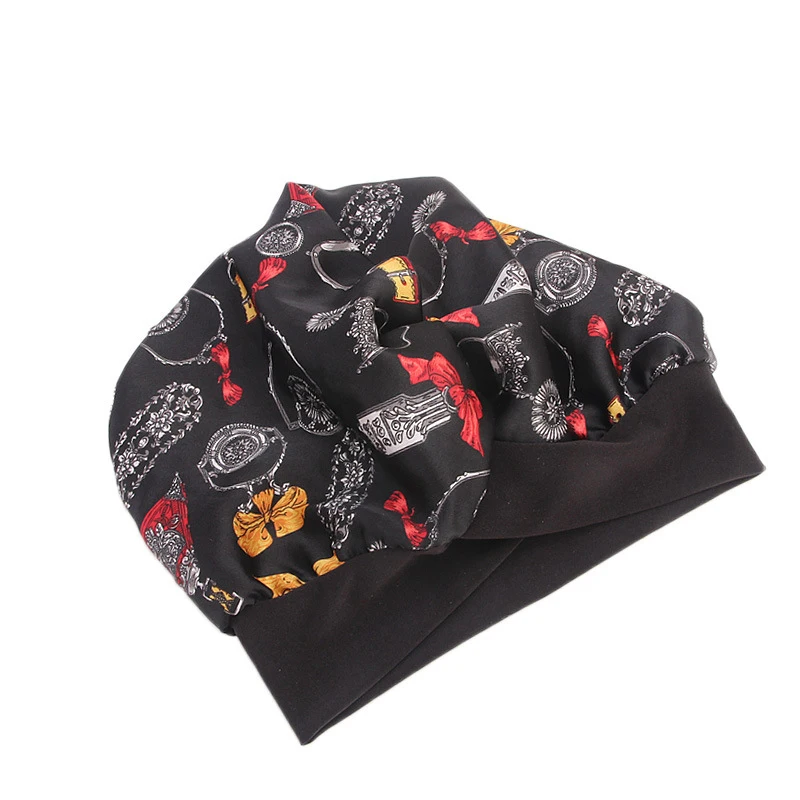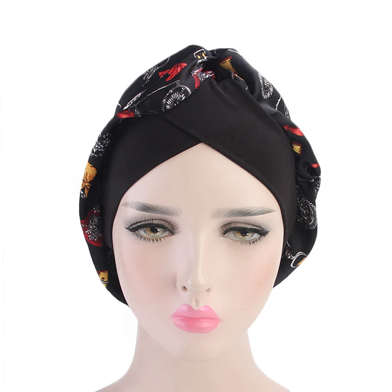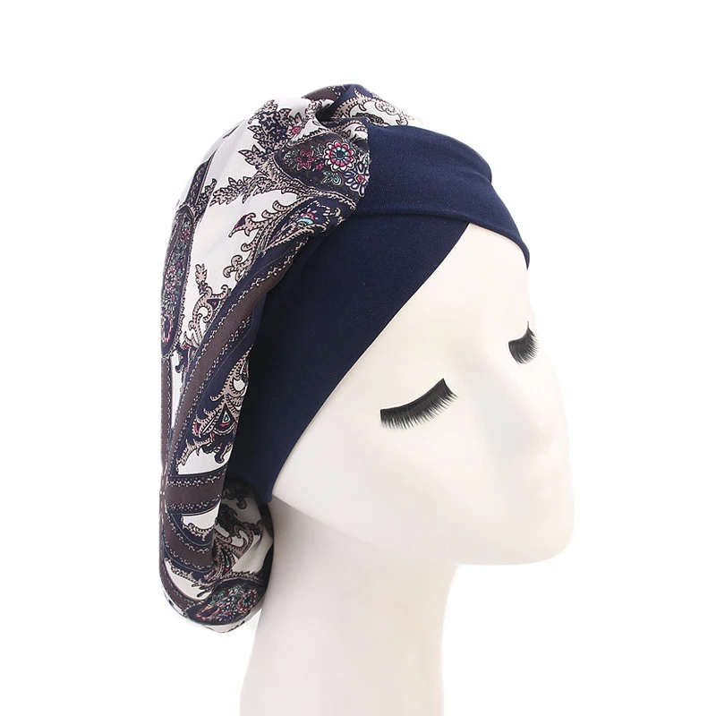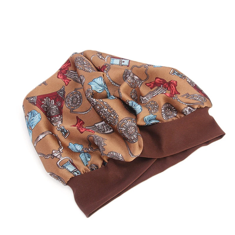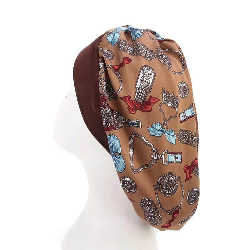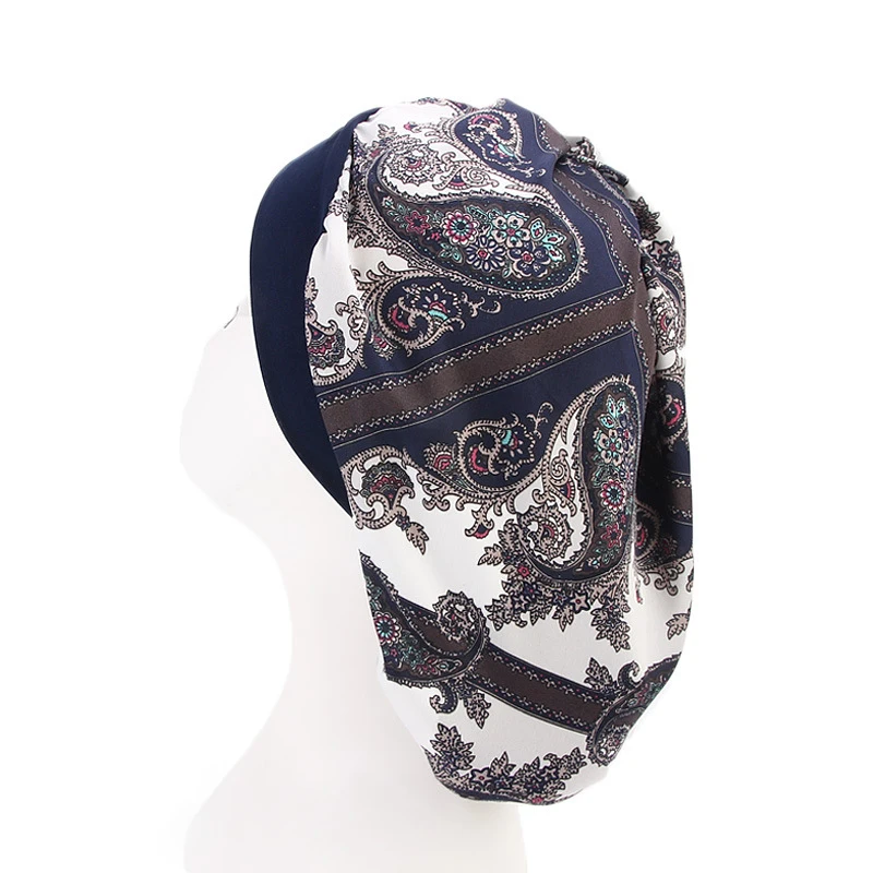 Модная шапка-тюрбан с принтом, шелковая смесь, женский шарф-накидка, женский головной платок, головной убор в мусульманском стиле, головной убор, хиджаб, шапки-подгузники