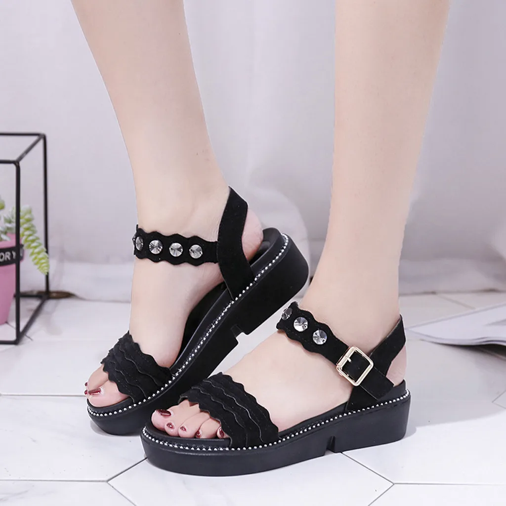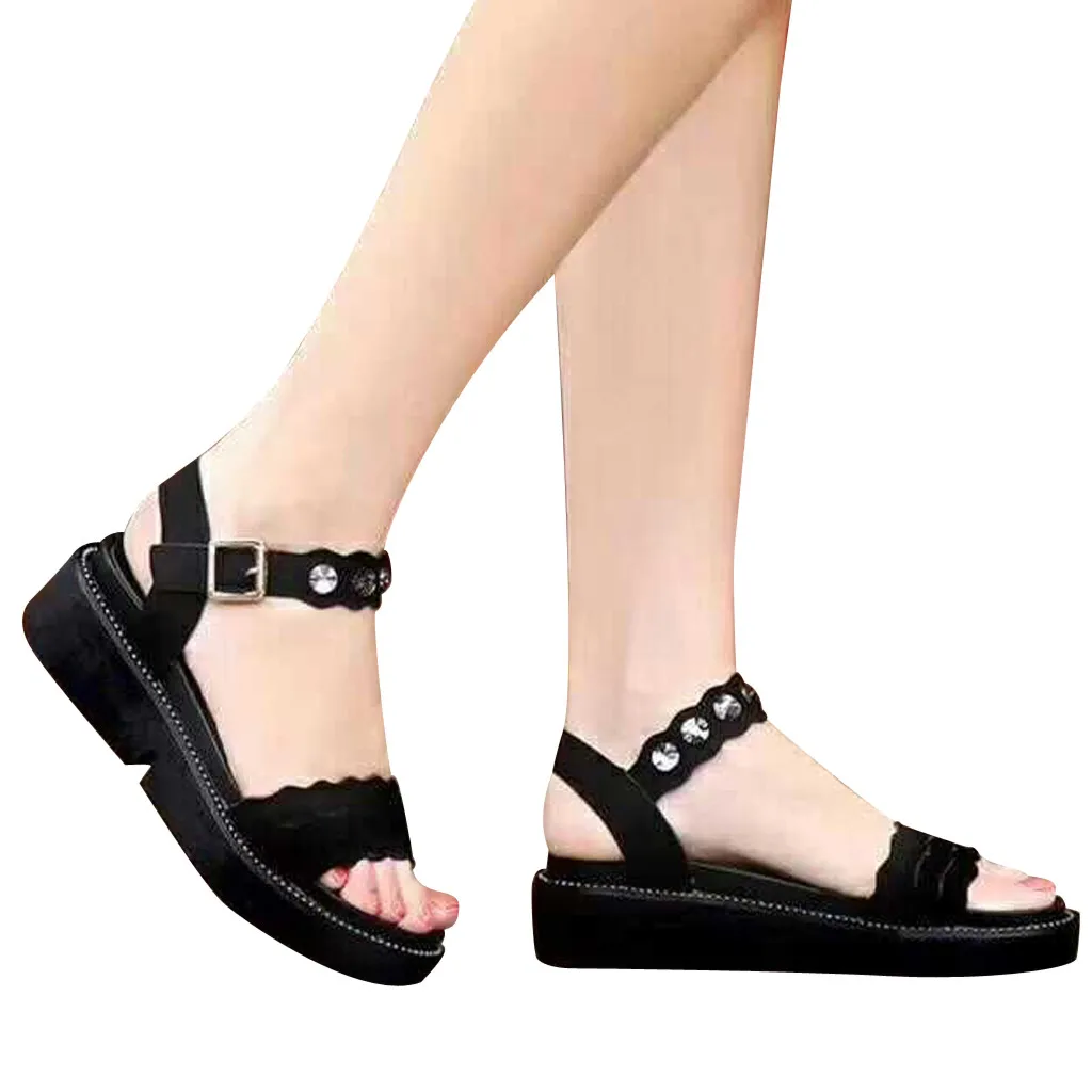 Женские сандалии с открытым носком SAGACE, летние пляжные туфли, стразы на плоской подошве, с открытым носком и пряжкой, римские сандалии, 2020