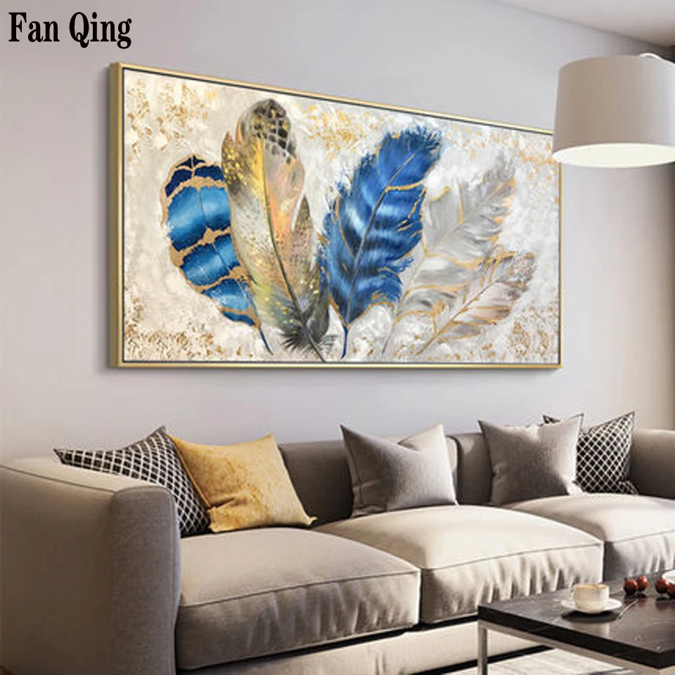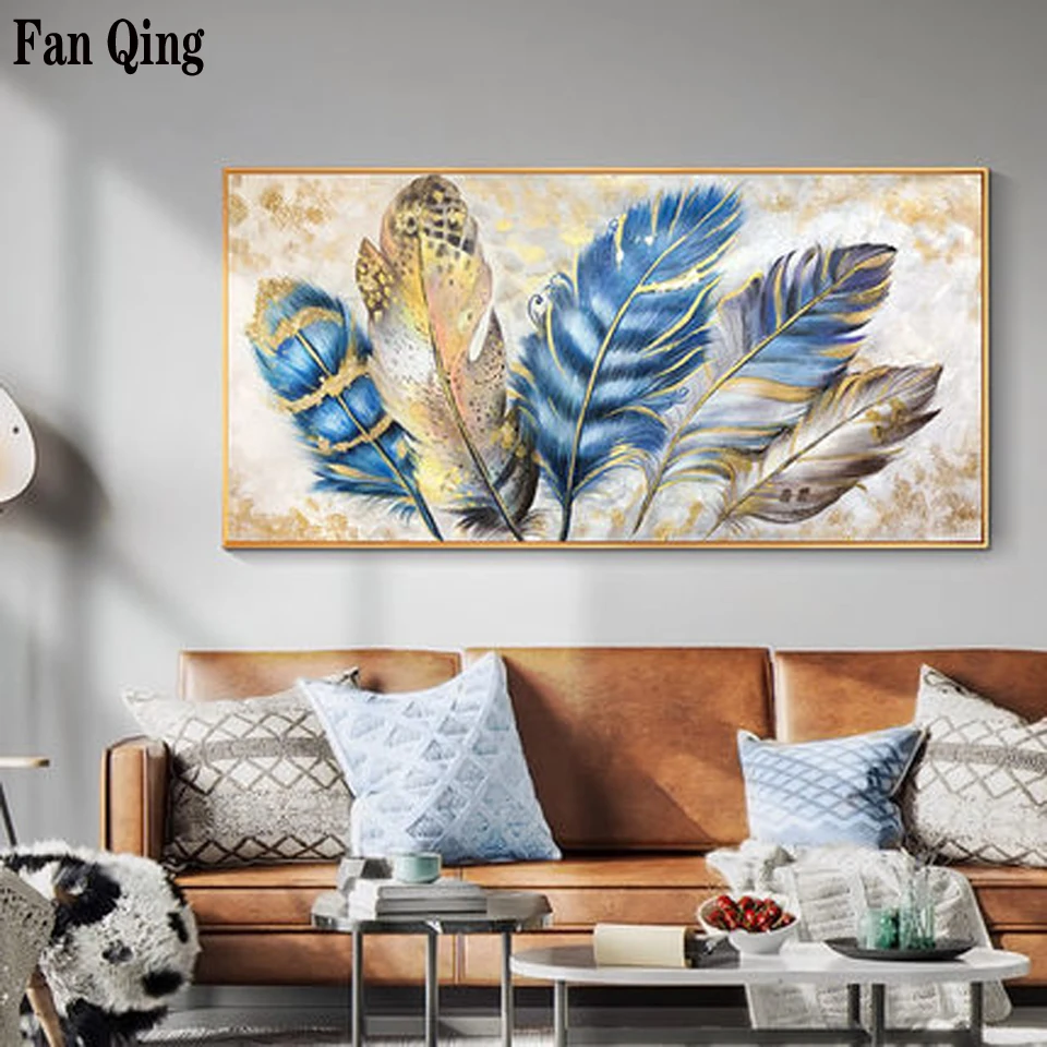Алмазная мозаика 5D сделай сам, картина из абстрактных перьев, вышивка крестиком, 3d вышивка из страз, полная выкладка, домашний декор