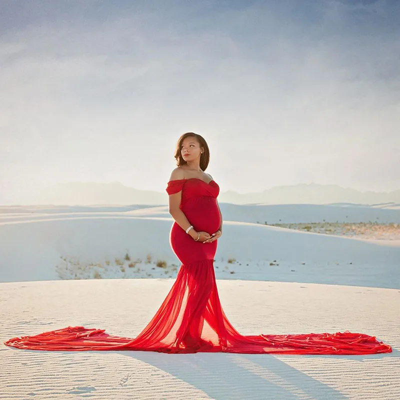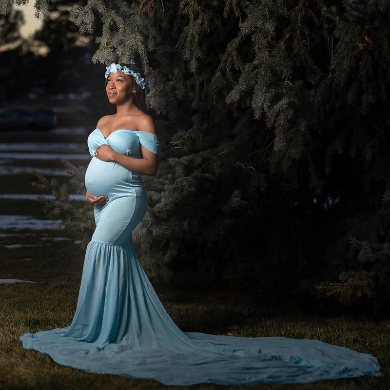 Новинка Реквизит для фотосъемки для беременных Хлопковое платье для фотосъемки платья с открытыми плечами для беременных с длинным хвостом юбка-годе женская одежда макси