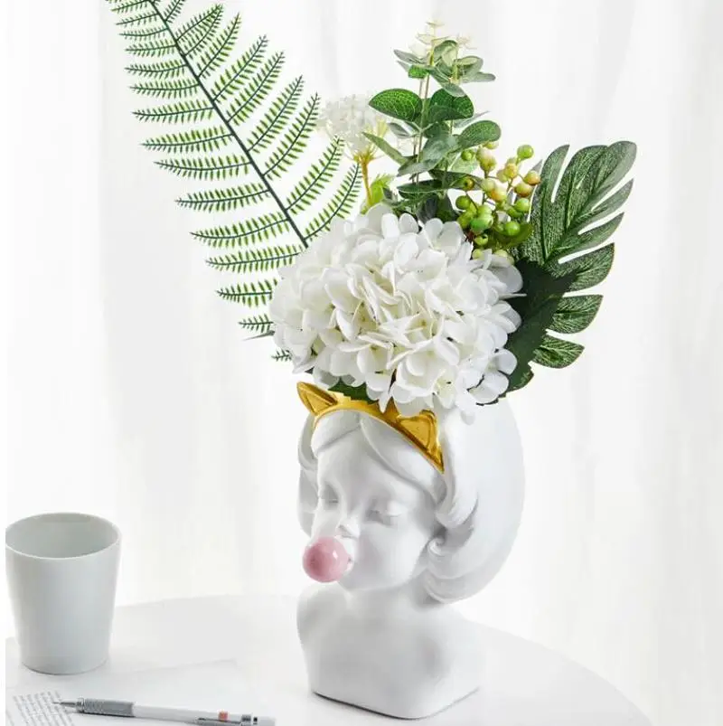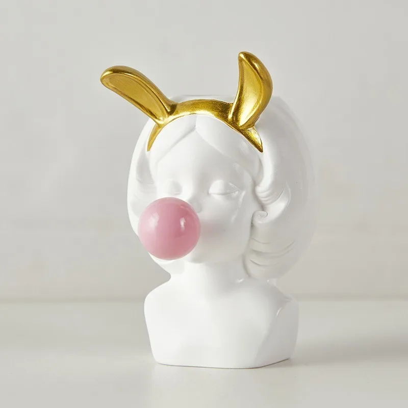 Милая девушка, выдувающая пузыри, кашпо для суккулентных растений виниловый, с изображением цветка горшок, ваза в скандинавском стиле для домашнего декора столешницы, цветочный горшок в различных стилях.