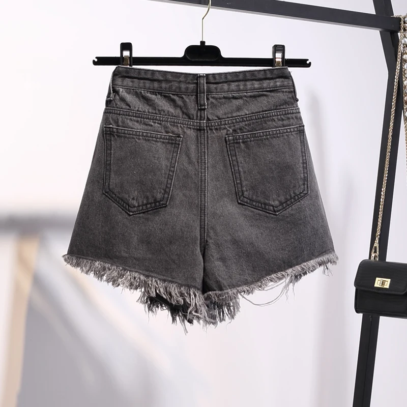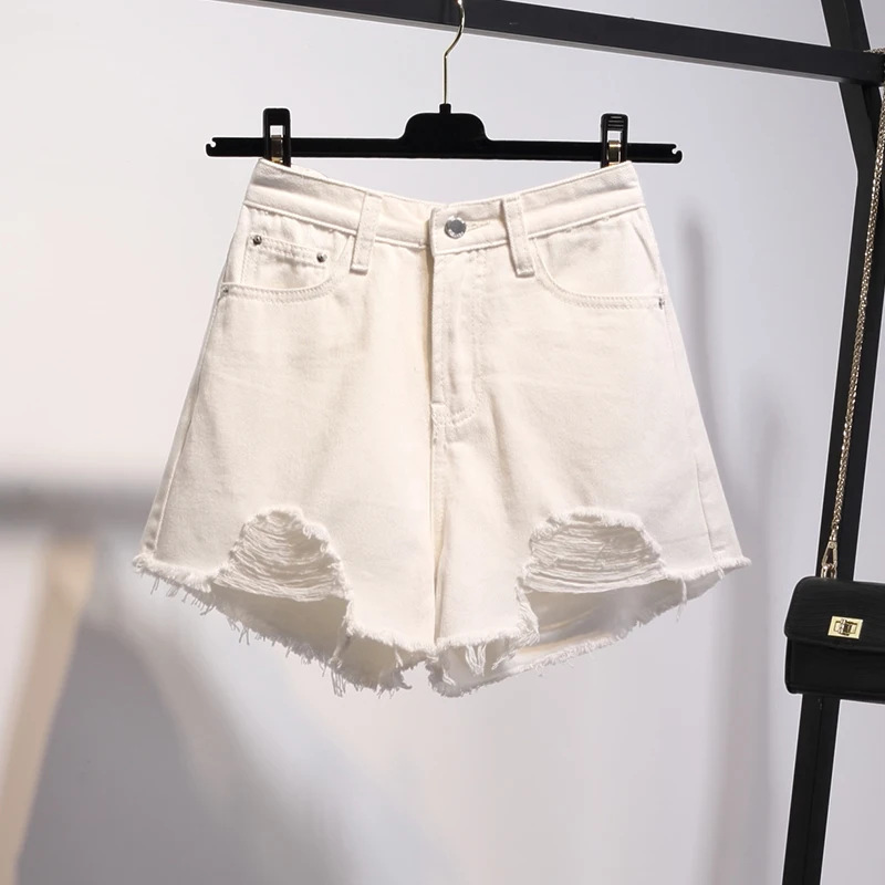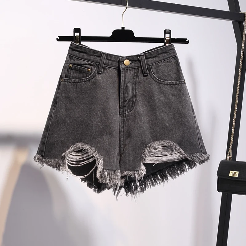 Женские джинсовые шорты с дырочками и необработанными краями, новые модные уличные повседневные летние шорты 2021 года, свободные, тонкие, с высокой талией, женские джинсы, горячие шорты