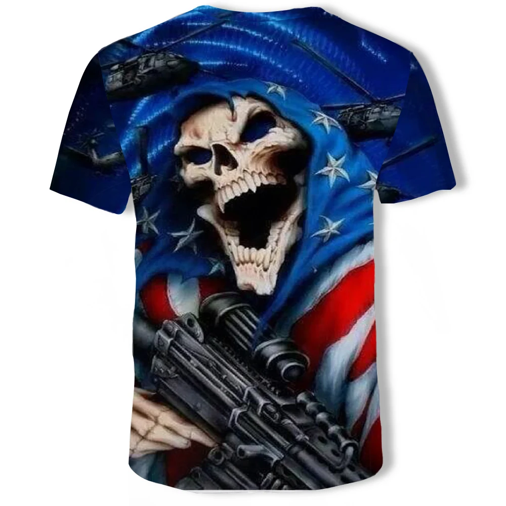 Забавная футболка 2021, уличная футболка с 3D принтом черепа в стил...