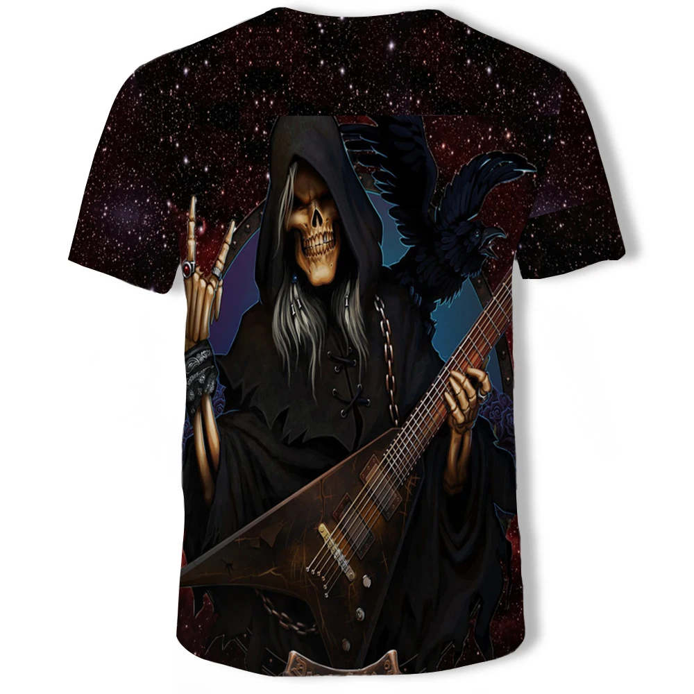 Мужская футболка с 3D-принтом черепа, черная футболка оверсайз в ви...