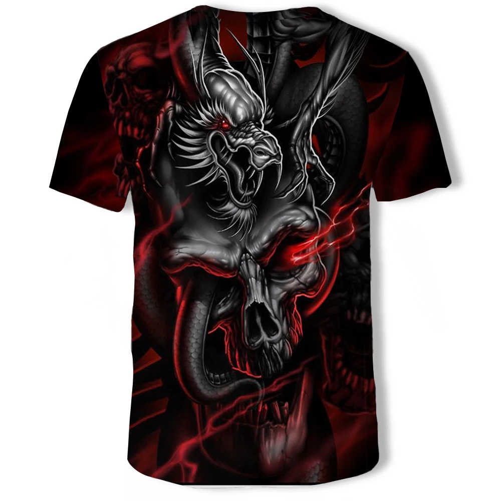 Футболка мужская с 3D-принтом молнии и черепа, уличная одежда в сти...
