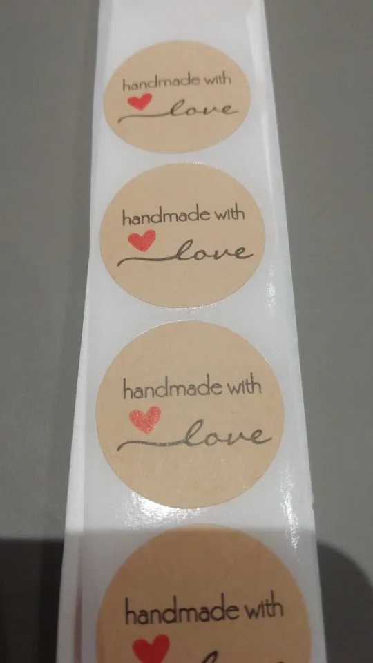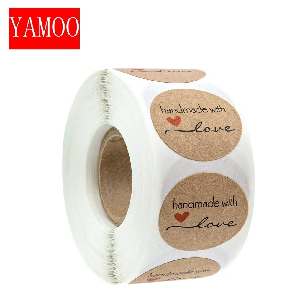 Натуральный Крафт круглый ручной работы с любовью наклейки s этикетки наклейки для скрапбукинга s посылка стикер для канцелярских товаров наклейки 100-500 шт.