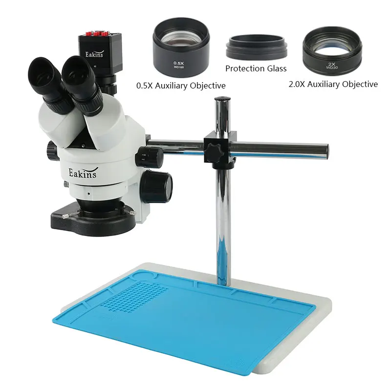 Тринокулярный микроскоп 7X-45X с зумом и подсветкой, стерео микроскоп со светильник кой, камера 13 МП, 720P, VGA, HDMI для ремонта телефонов, осмотра печатных плат
