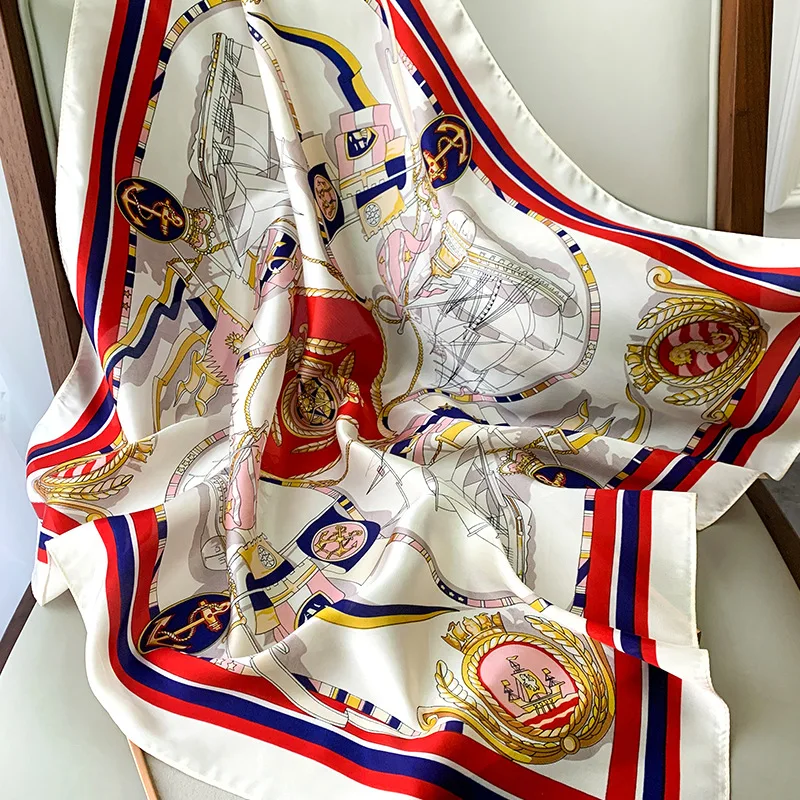 2021 г., роскошный брендовый квадратный шелковый атласный шарф Испании, Женский шаль и палантин, Галстуки для волос, банданы, хиджаб 70*70 см