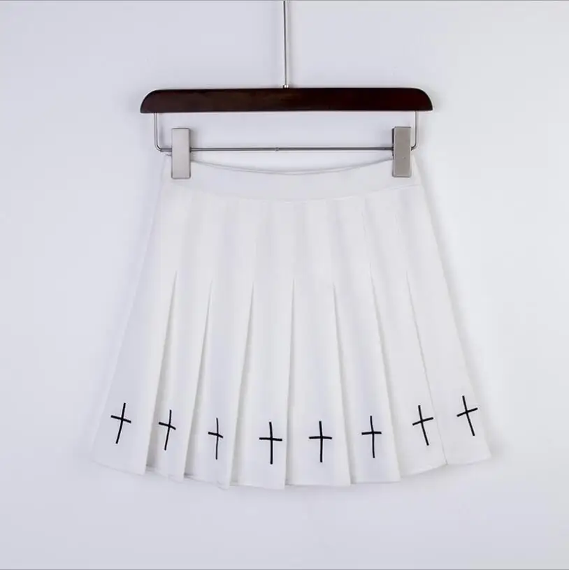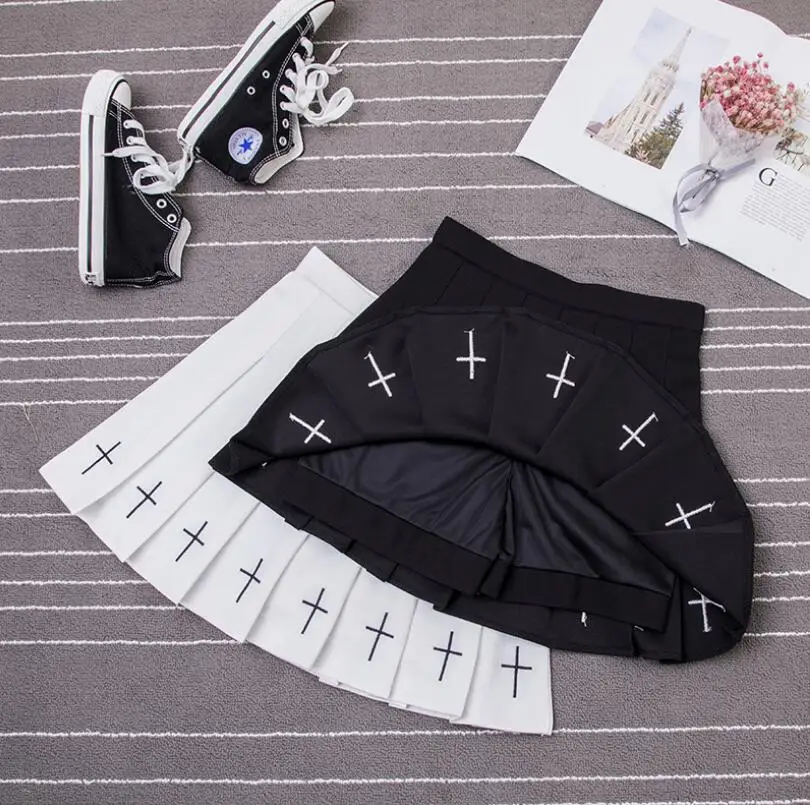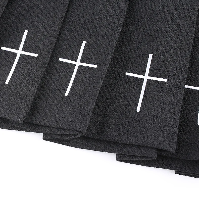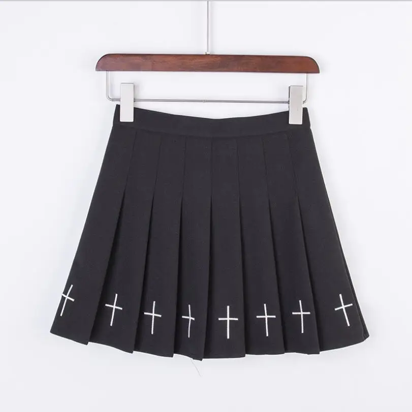 Женская плиссированная мини-юбка, летняя черная юбка трапециевидной формы с вышивкой в готическом стиле