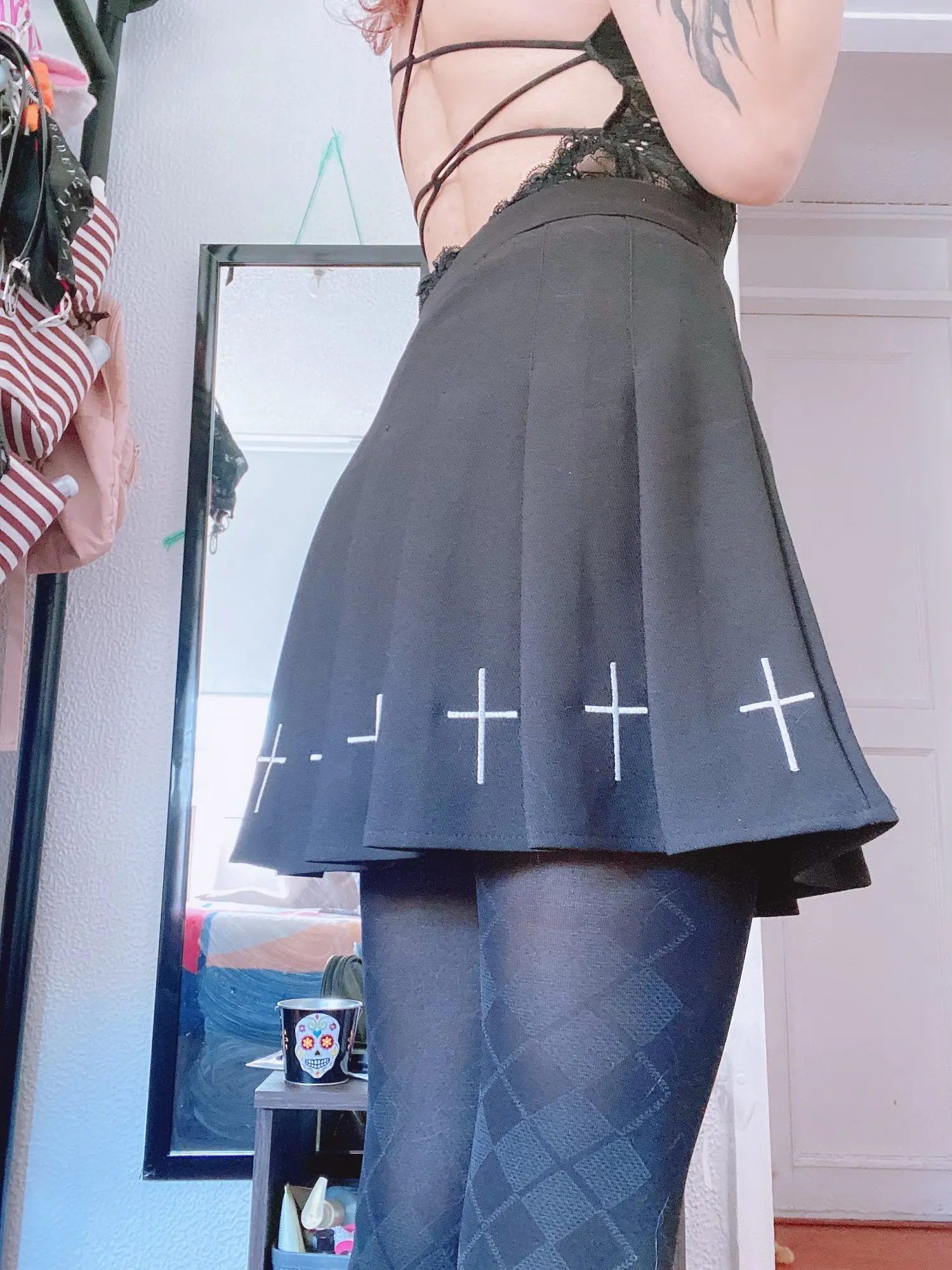 Юбка очень точная, она тоже очень удобная! Просто убедитесь, что выбрали правильный размер, потому что он немного тугой. Это юбка без шнуровки с шортами, которые я удивляюсь, и это потрясающе, потому что мне не нужно беспокоиться о том, что они сочетаются со мной, так как в юбке есть шорты! Это так красиво и не дешево! Ткань хорошая, и так же это брутальные кресты! Я рекомендую 100%