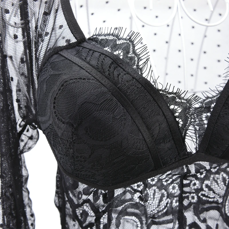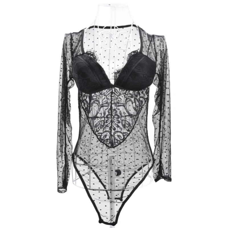 Прозрачный сетчатый кружевной боди, женский боди, сексуальный комбинезон с длинным рукавом, комбинезон, боди