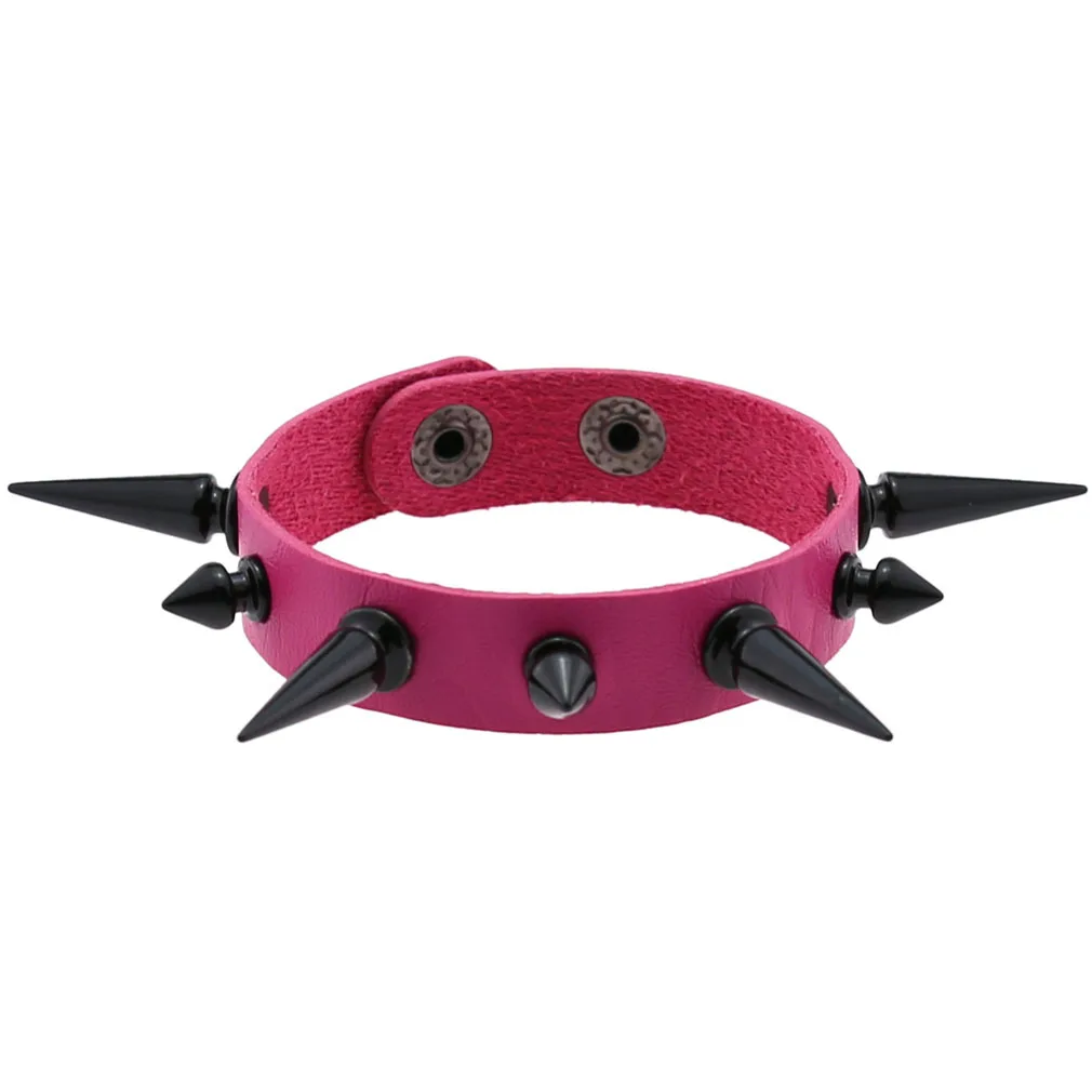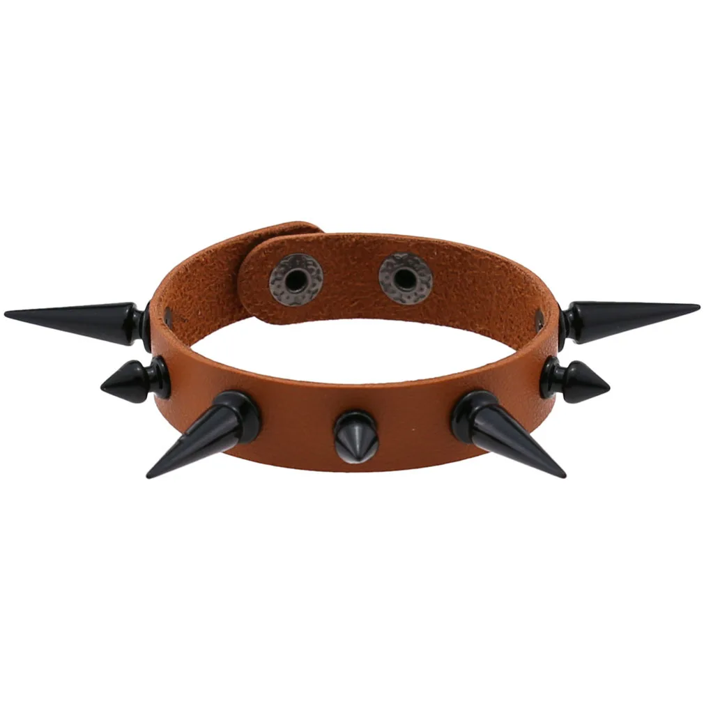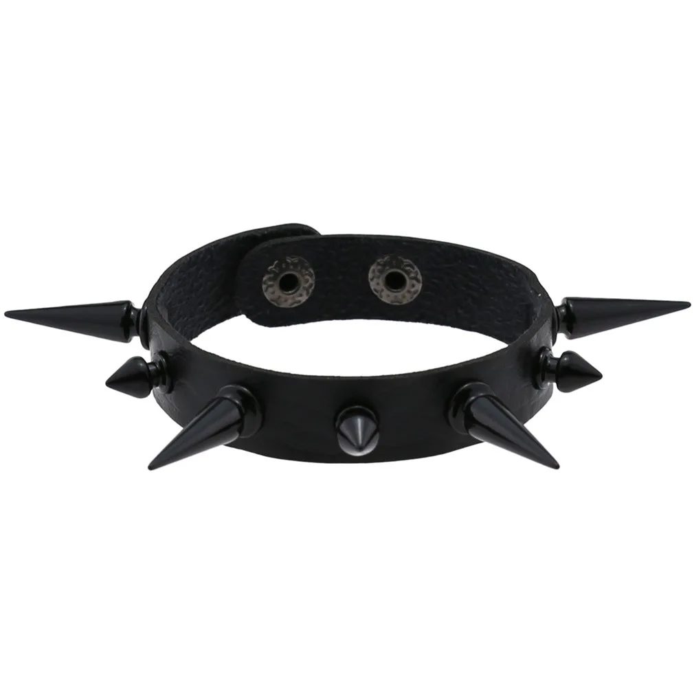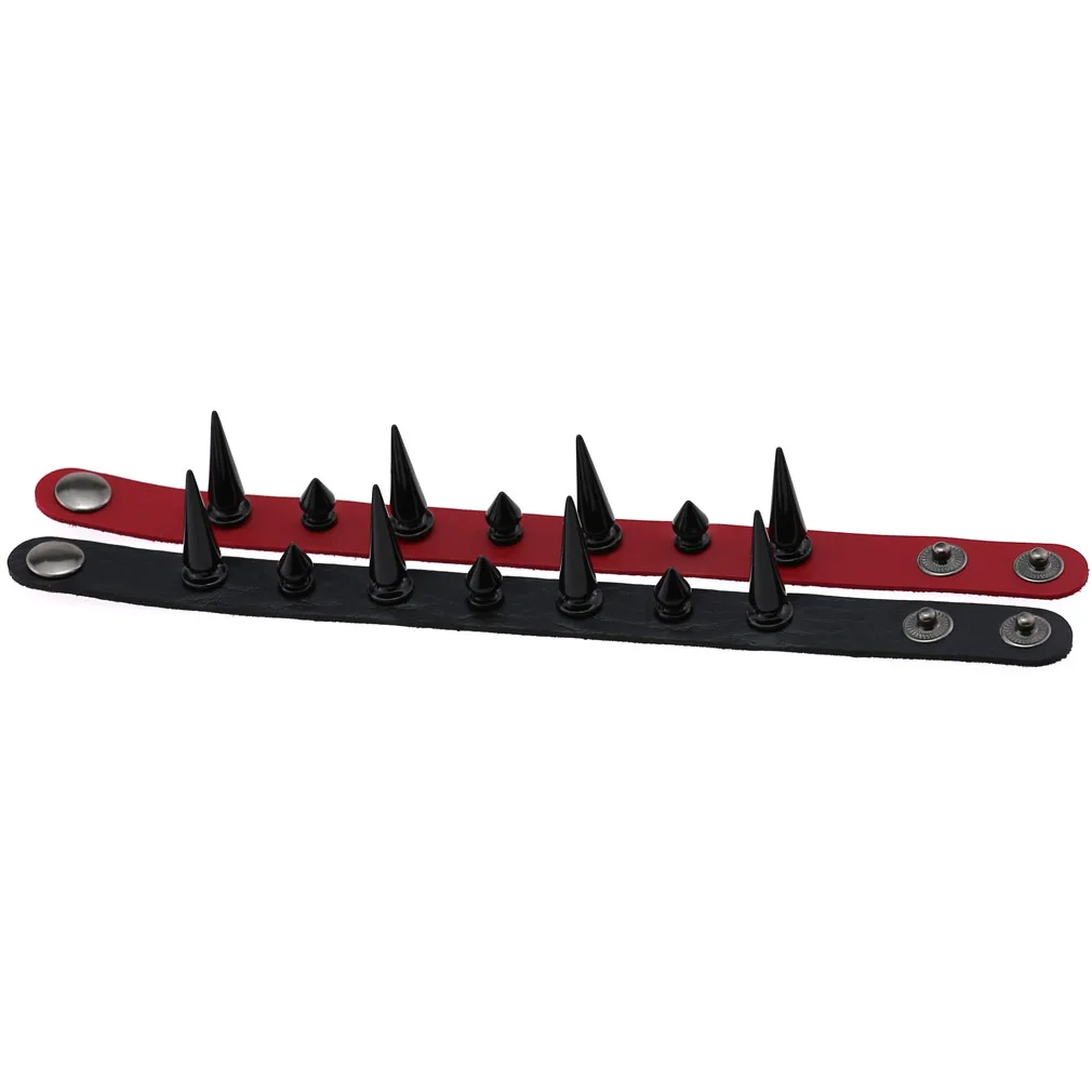 Браслеты KMVEXO мужские кожаные широкие, готические, черные, с шипами, с заклепками