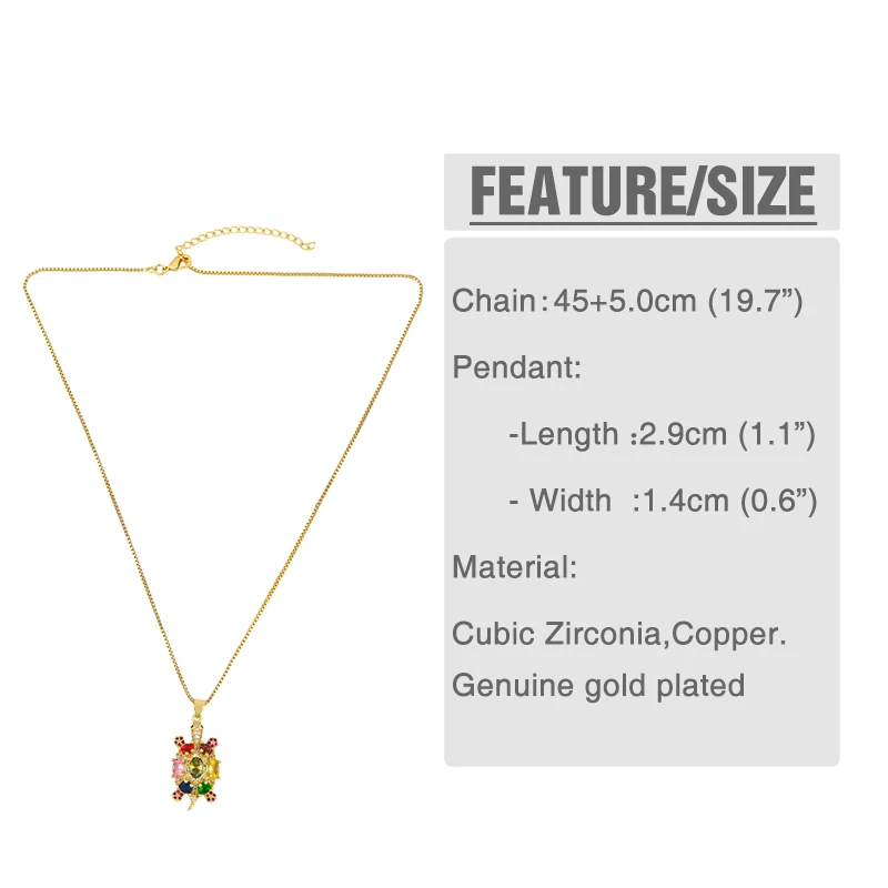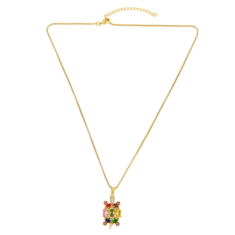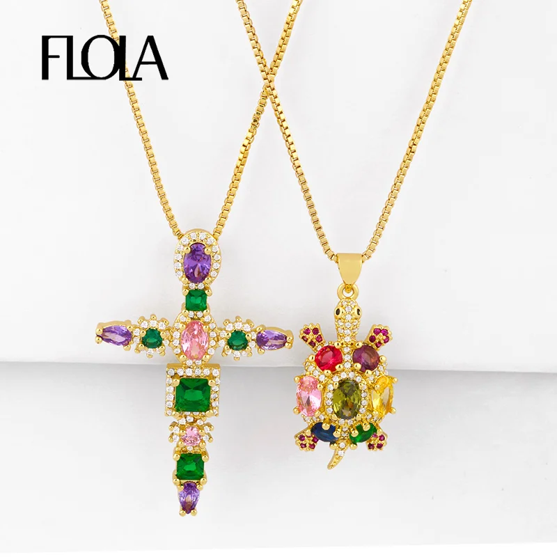 FLOLA CZ радужные ожерелья с крестом для женщин многоцветное ожерелье с черепашкой Кристалл кубического циркония Позолоченные ювелирные изделия arcoiris nkeq74