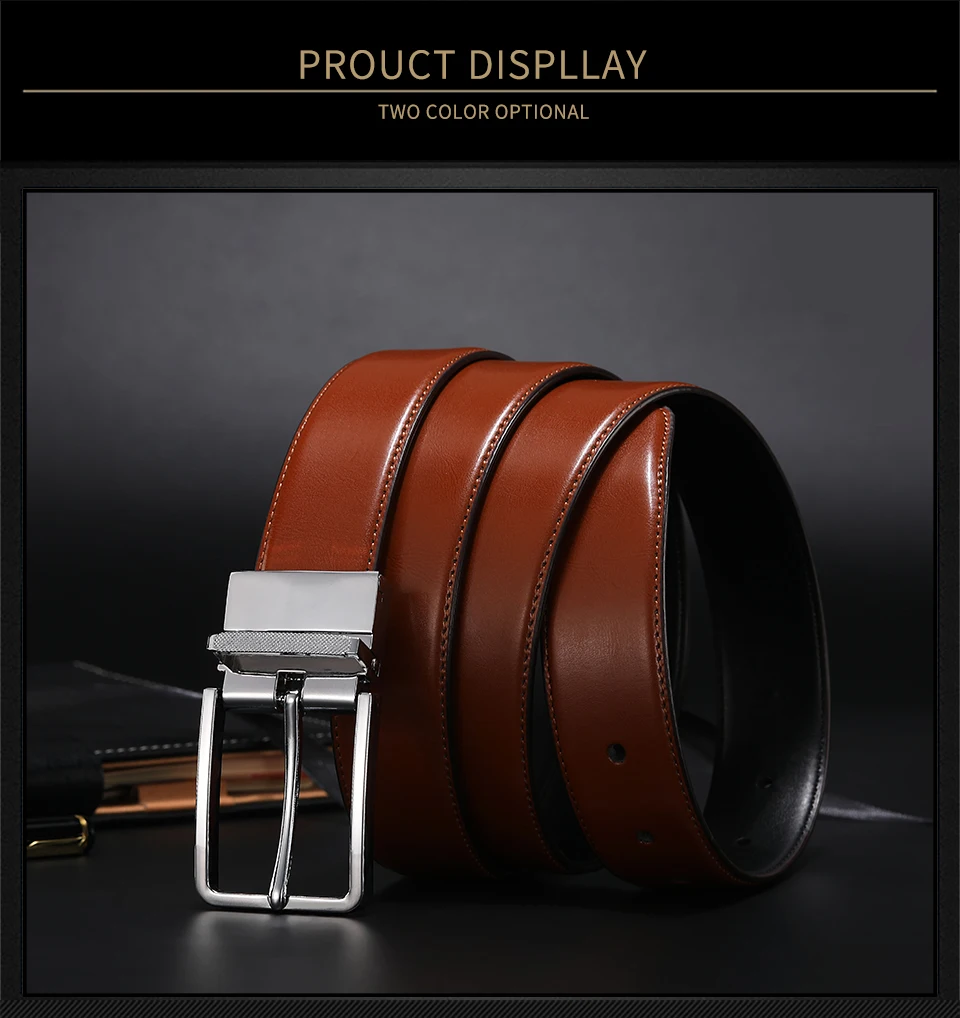 Вращающаяся Пряжка Бизнес Мода Мужской широкий ремень Высокое качество Натуральная кожа двусторонний ремень для мужчин HQ115