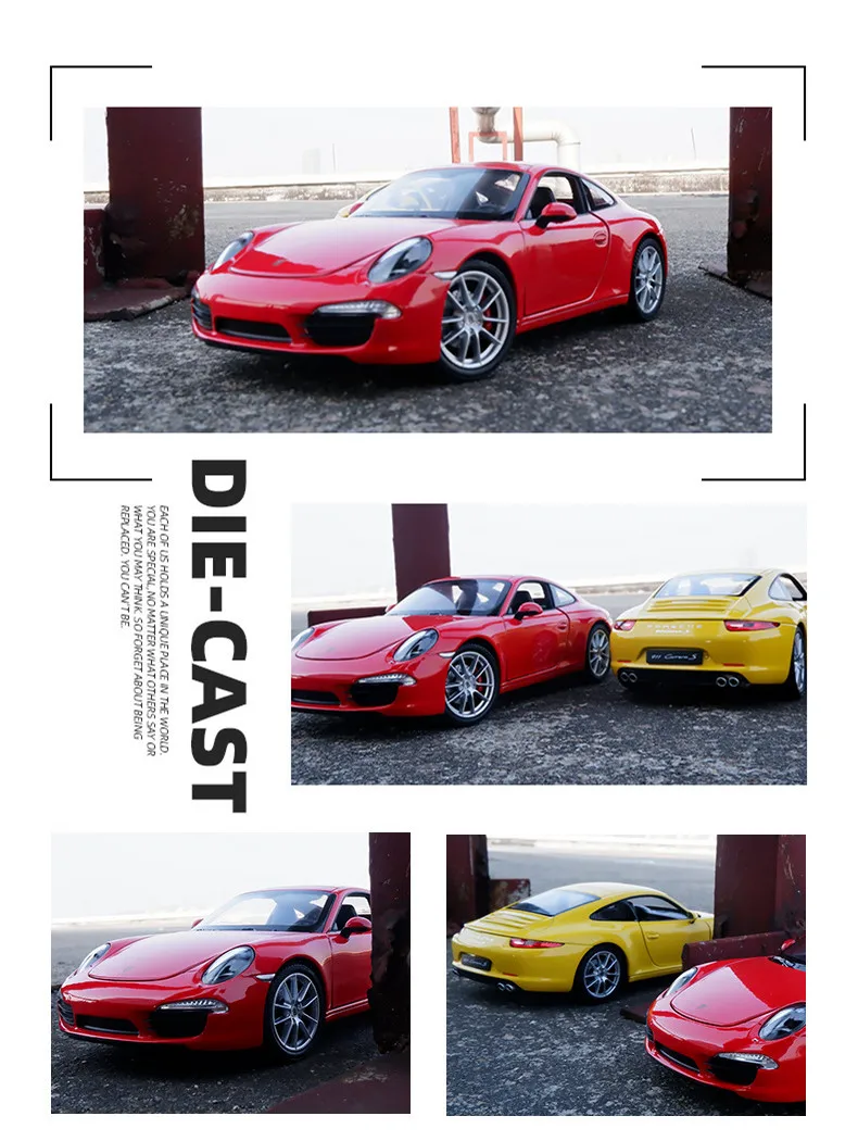 Модель желтого автомобиля CARRERA S 1:24 из сплава, коллекционная игрушечная машинка из литого под давлением, подарок, игрушка для транспортировки без дистанционного управления