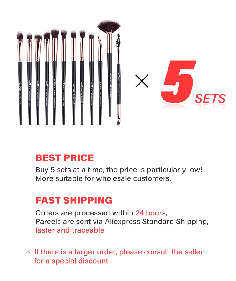 Цвет: черныйИспользование для: макияжа глазВ комплект входит: 5 комплектов из 12 кистейМатериал кисти: синтетический ворс, пластиковая ручка, алюминиевый ободок.