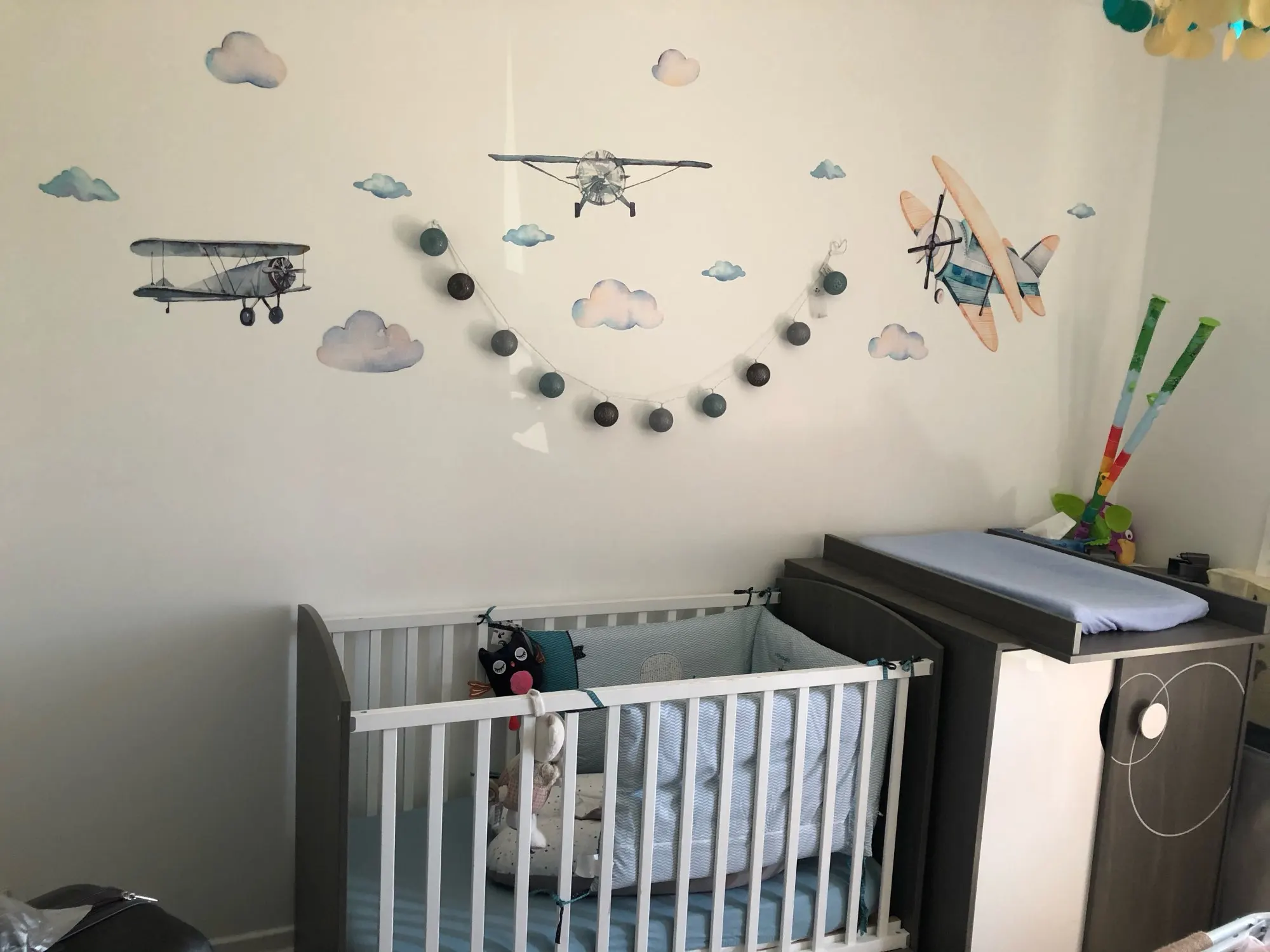 Летающие в небе настенные наклейки для детской комнаты, спальни, экологичные виниловые наклейки на стены, мультяшный самолет, настенные фрески, украшение для дома