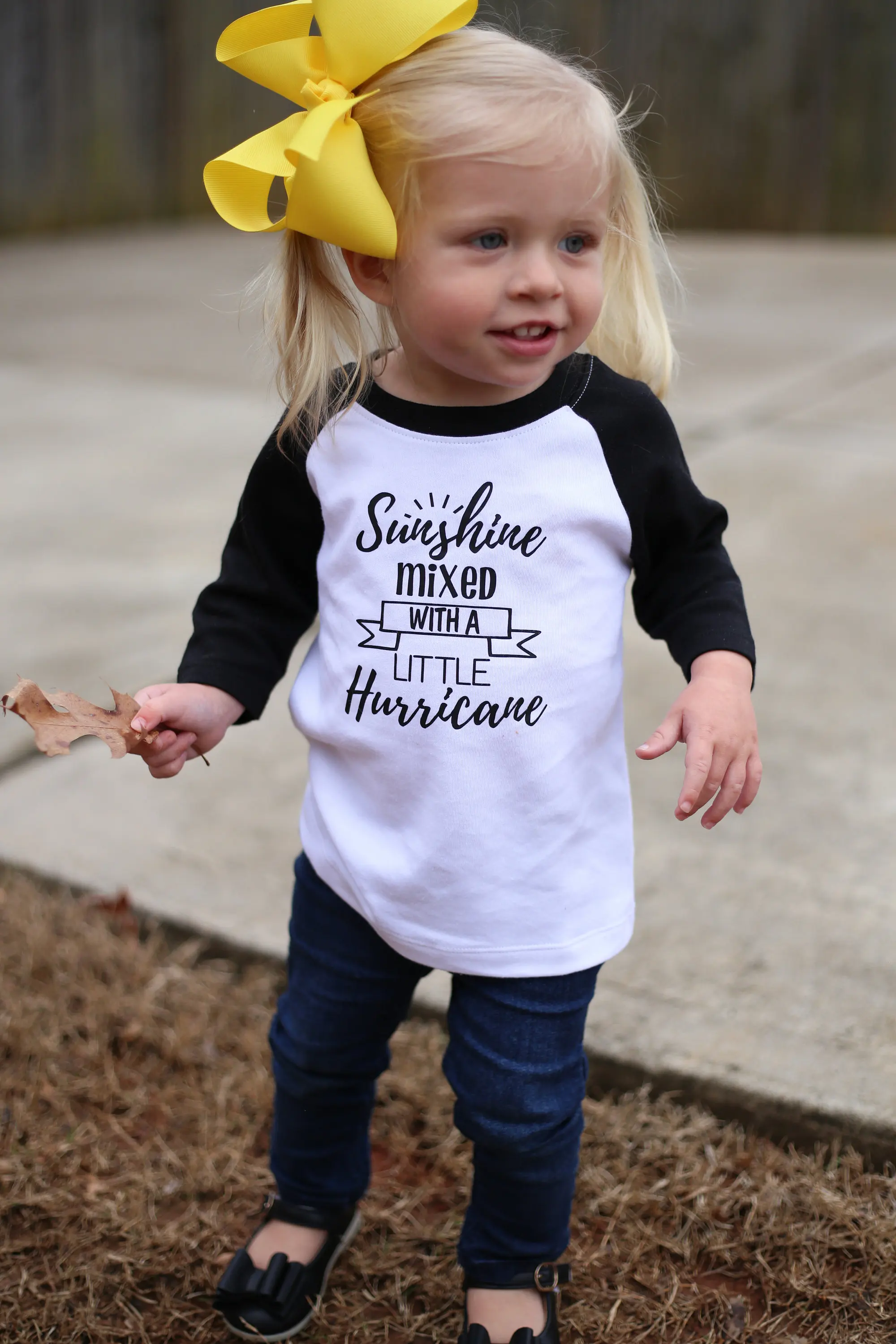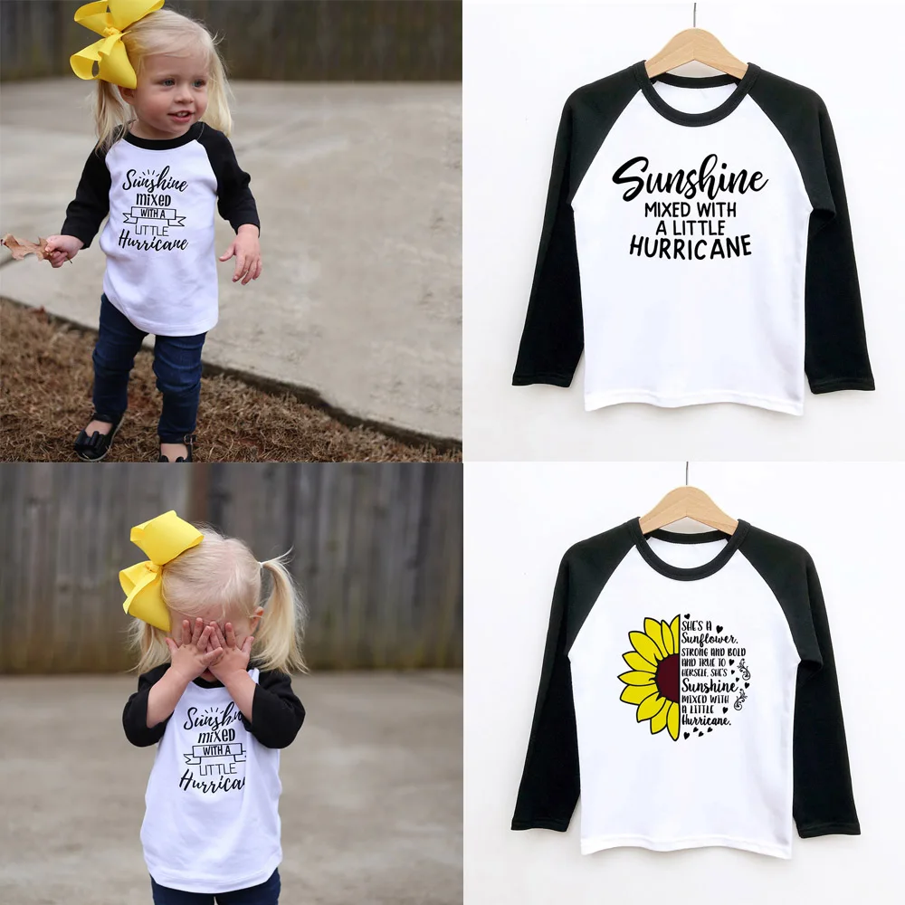 Sunshine смешанный с маленьким ураганом Забавная детская одежда реглан модные детские рубашки для малышей Модная одежда для маленьких девочек и мальчиков