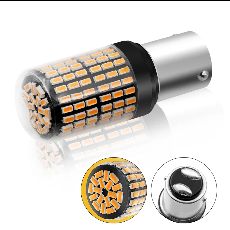 1 шт. супер яркие светодиодные лампы Canbus 3014 144 SMD 1157 BAY15D P27/5 Вт неполярность без ошибки автомобильный светильник без гипервспышки Янтарная автомобильная лампа