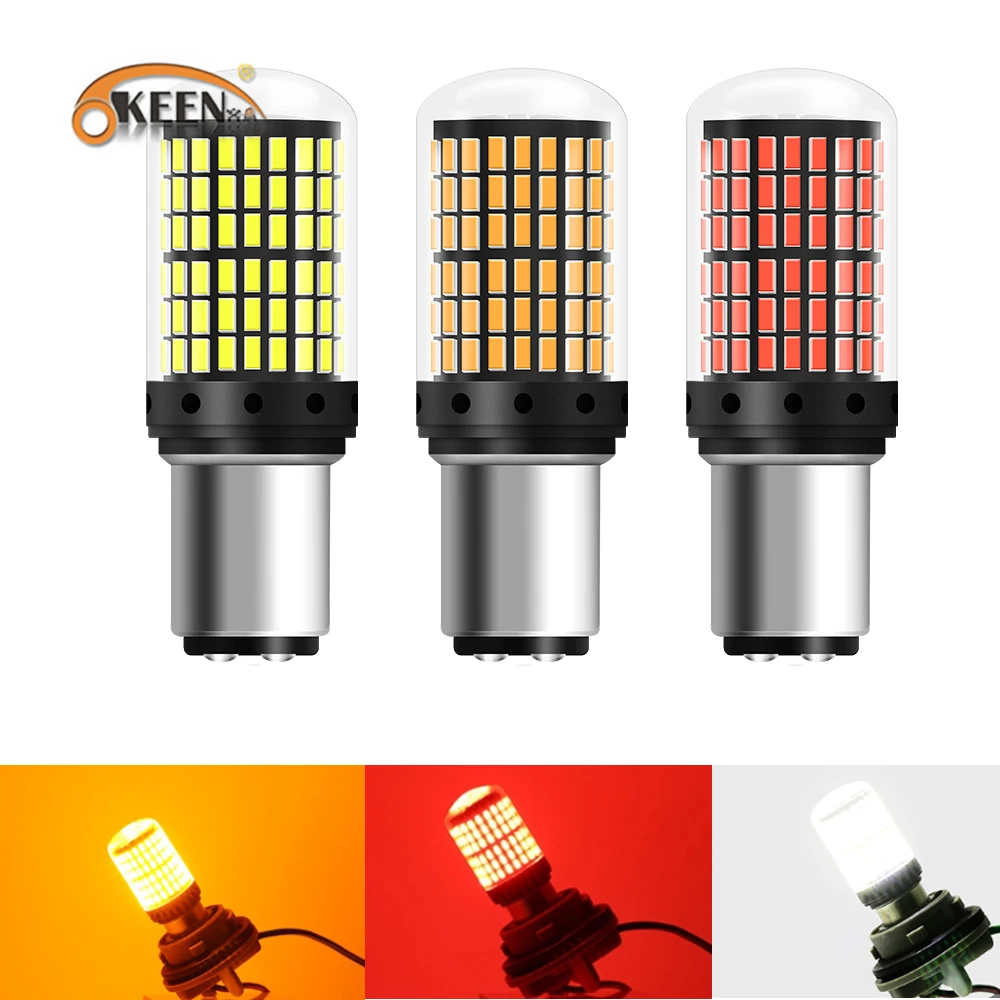1 шт., Сверхъяркие светодиодные лампы Canbus 3014 144 SMD 1157 BAY15D P275 Вт, неполярность, без ошибок, автомобильный фонарь, не очень мигает, янтарная автомобильная лампа