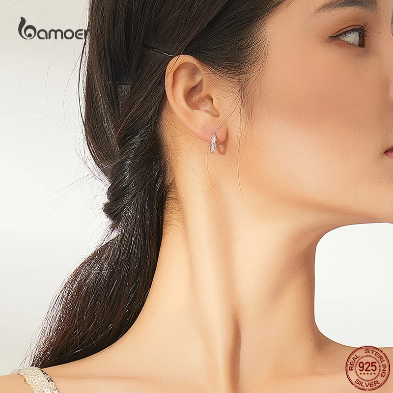 Женские серьги-кольца Bamoer GAE289, 925 пробы, серебристые, изыска...
