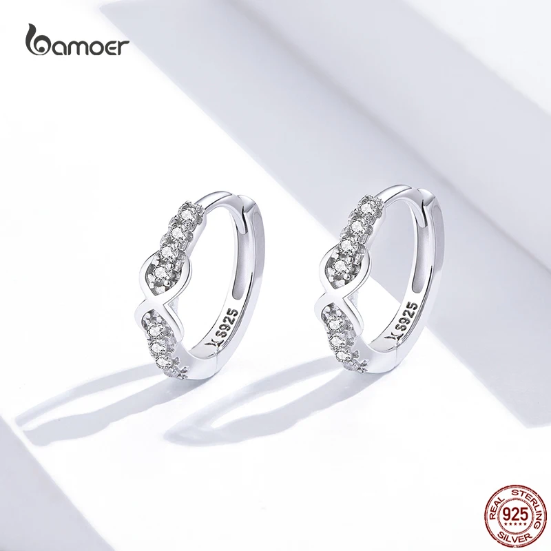 Женские классические серьги-обручи Bamoer, серьги из стерлингового серебра 925 пробы с символом бесконечности, ювелирные украшения для свадьбы, GXE872