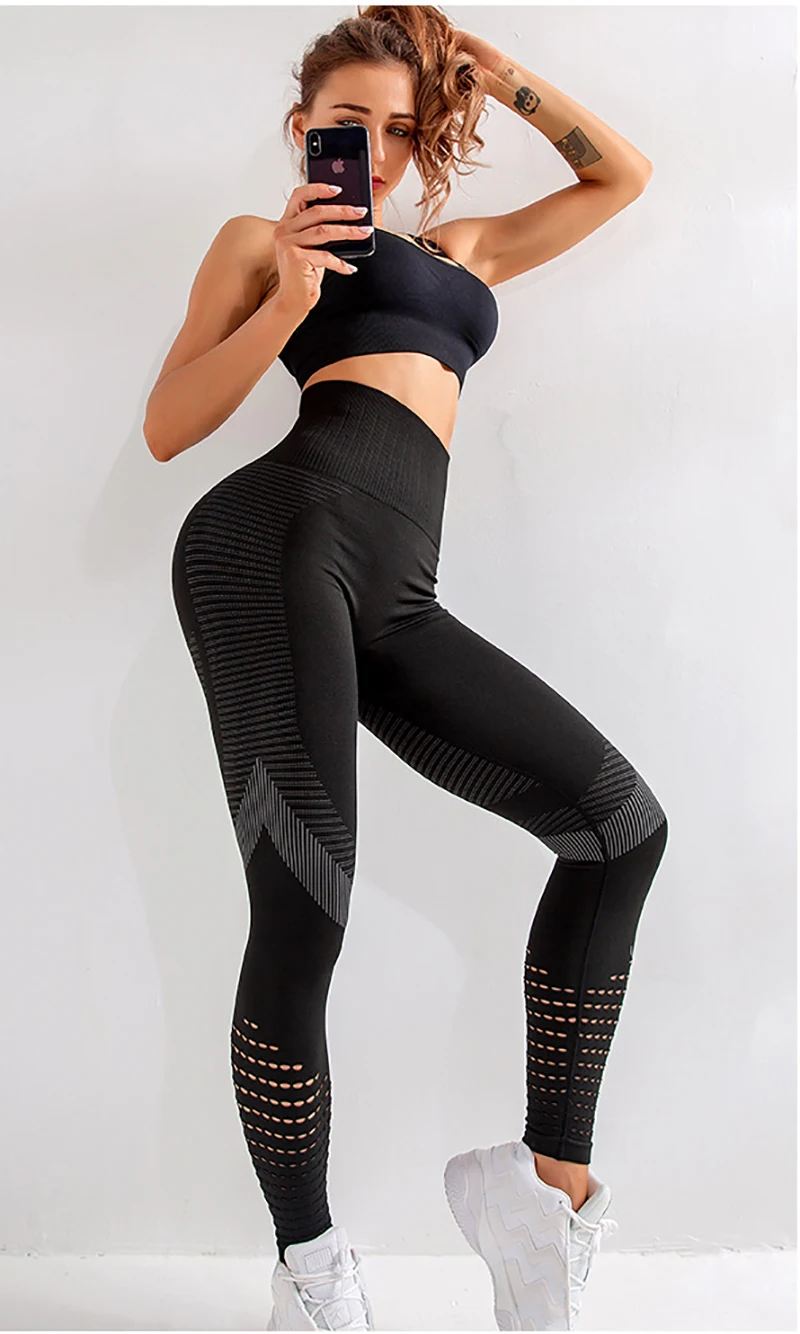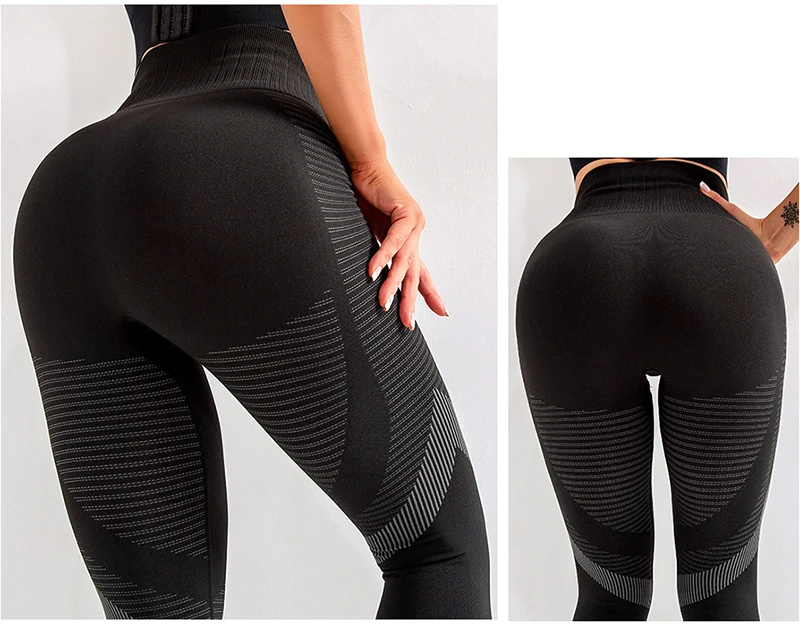 Женские Бесшовные Леггинсы с высокой талией, узкие пуш-ап Джеггинсы в полоску